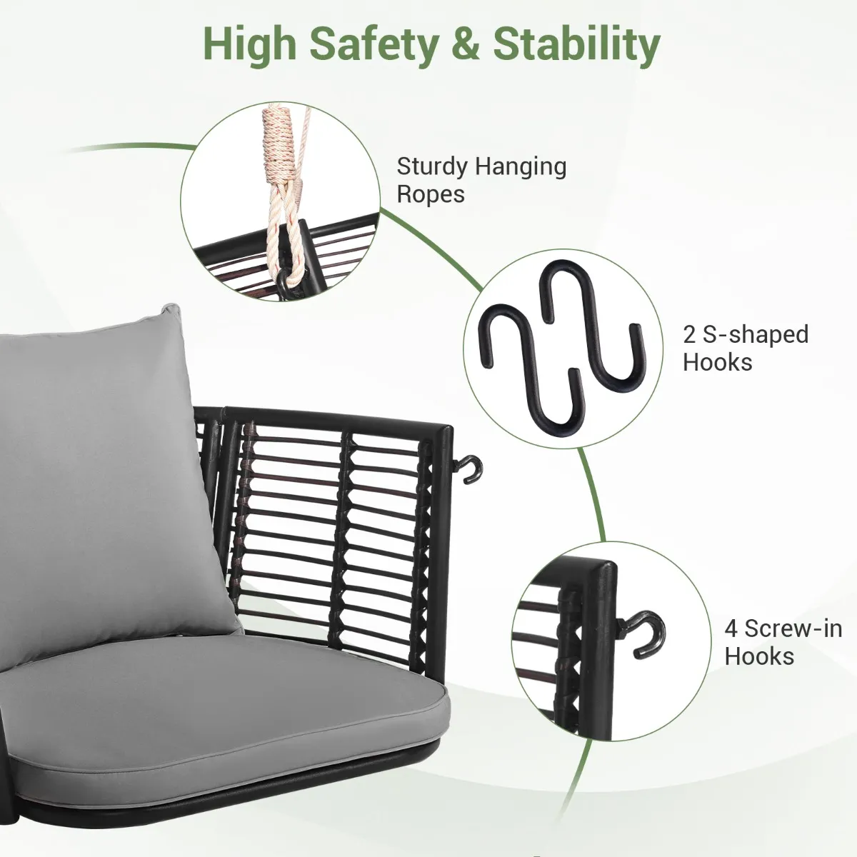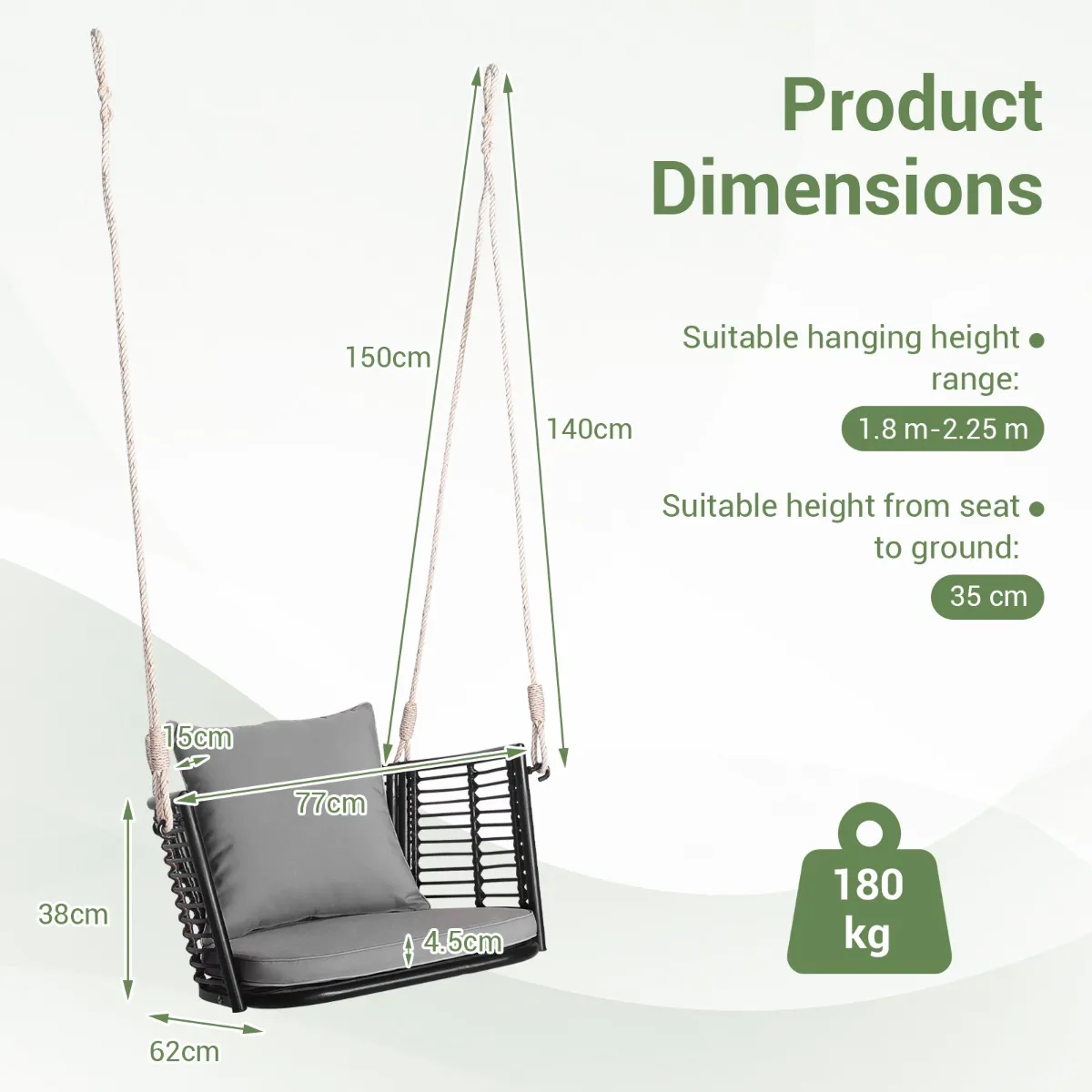 Stabiel metalen frame: Met het robuuste metalen frame is de schommelstoel roestvrij, vervormingsbestendig en uiterst robuust en garandeert een lange levensduur. En deze enkele schommelstoel kan tot 180 kg dragen.