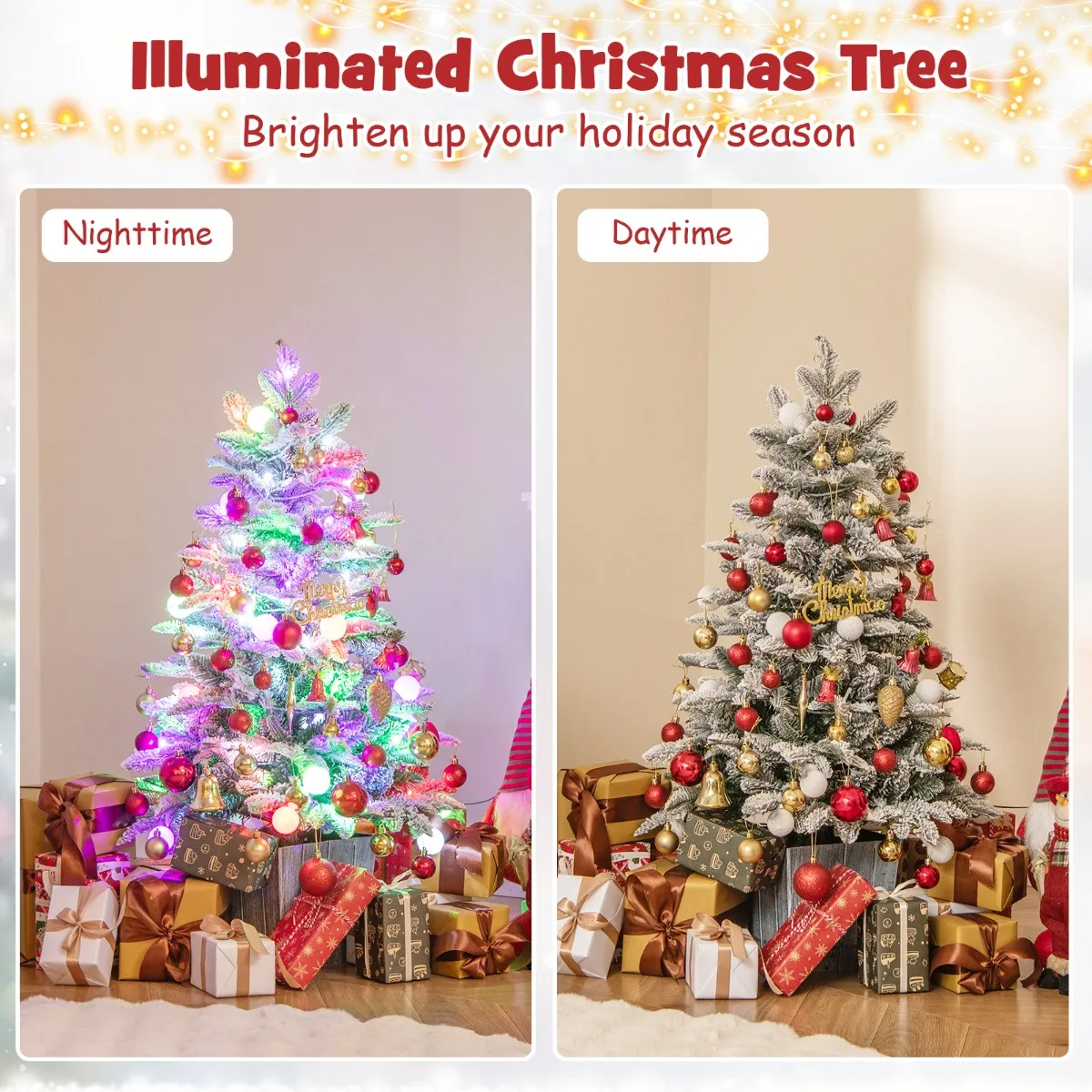 【Charmant lichteffect】: De verlichte kerstboom is vooraf versierd met 80 kleurrijke LED-lampjes, en er zijn 20 van deze lampjes bedekt met charmante bollen, die een grillig tintje toevoegen aan je feestelijke decoraties.