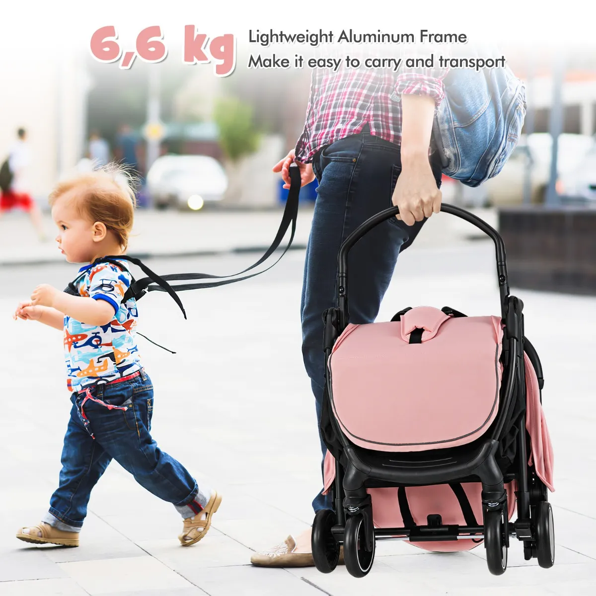 【Lichtgewicht en wendbaar】: Deze reiswandelwagen heeft een lichtgewicht aluminium frame van slechts 6,6 kg, waardoor hij gemakkelijk te vervoeren en op te bergen is. In combinatie met de 4 schokabsorberende wielen kun je gemakkelijk manoeuvreren in straten, parken en drukke gebieden.