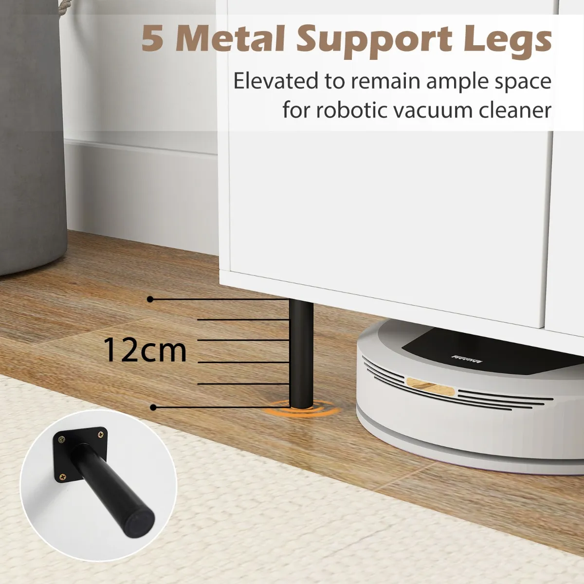 【5 metalen steunpoten】: Deze kast wordt ondersteund door 5 stevige metalen poten en biedt een betere stabiliteit en gewichtsverdeling, waardoor het werkblad 90 kg kan dragen. Bovendien is de bodem 12 cm verhoogd, zodat er voldoende ruimte is om te stofzuigen.