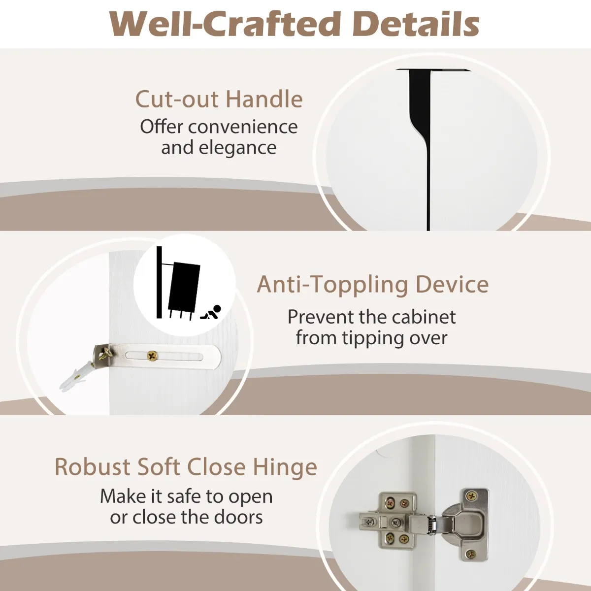 【Hoge veiligheid en stabiliteit】: De anti-kantelvoorziening voorkomt effectief dat de kast omvalt, wat een veilig gevoel geeft in huizen met kinderen en huisdieren. Bovendien zorgt het stevige softclose-scharnier ervoor dat deuren veilig geopend en gesloten kunnen worden.