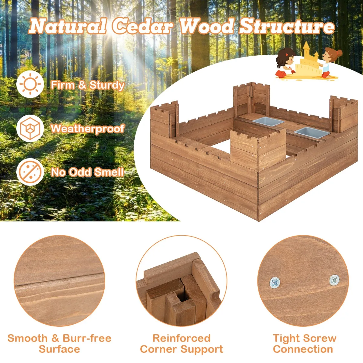【Grote zandbak met vestingsmotief】 De grootte van deze zandbak bedraagt 113 x 116 cm, genoeg voor 2 kinderen om samen te spelen. Het proces van graven, bouwen en verkennen kan de praktische vaardigheden en de creativiteit van kinderen bevorderen. Bovendien is het grappige vestingsmotief ook bij kinderen erg populair.