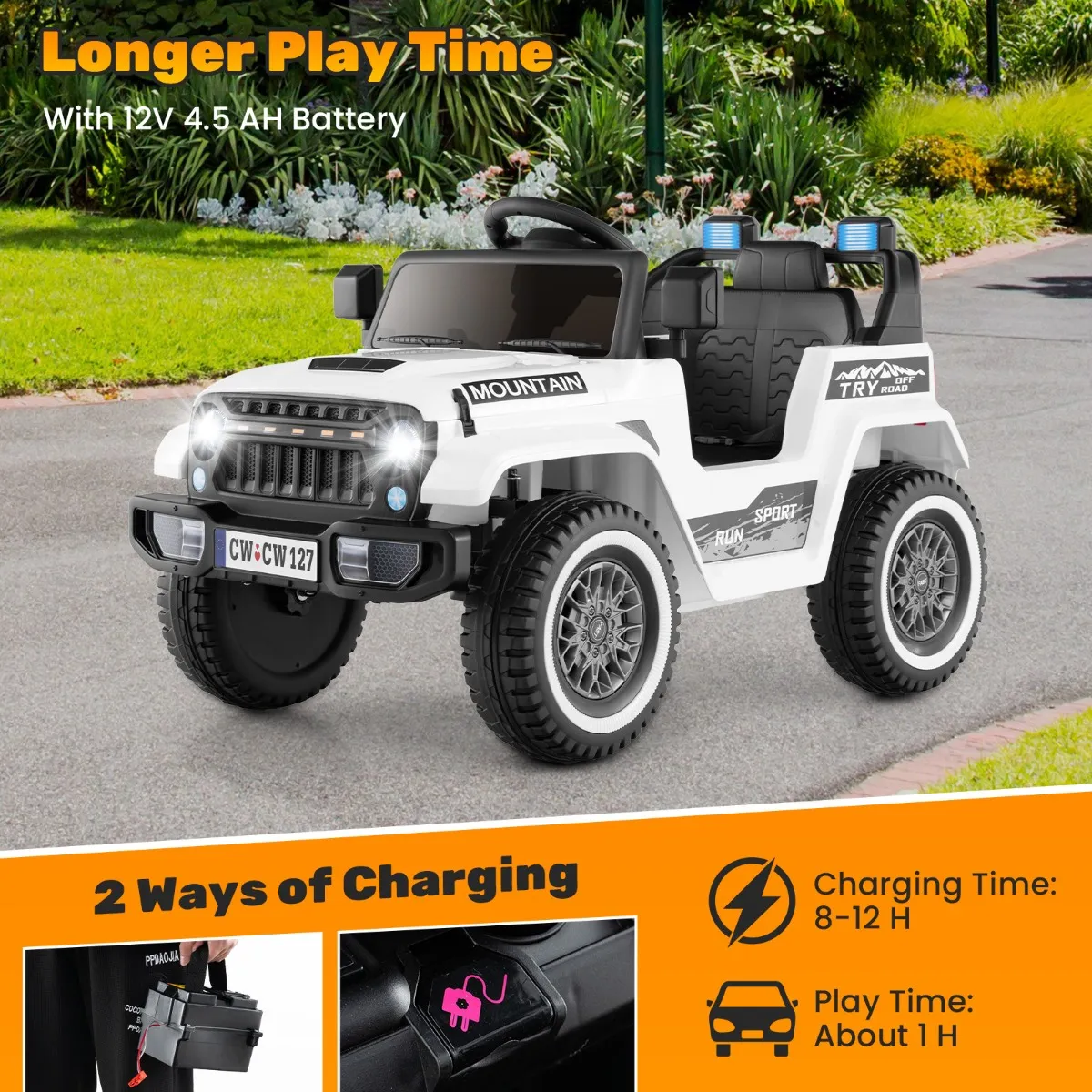 【Langdurig speelplezier】: Gemakkelijk op te laden met een verwijderbare batterij, onze Jeep brengt niet alleen eindeloze uren plezier, maar ook onvergetelijke herinneringen. Dit speelgoed is een veilig en vrolijk cadeau, perfect voor kinderen van 3 tot 8 jaar.