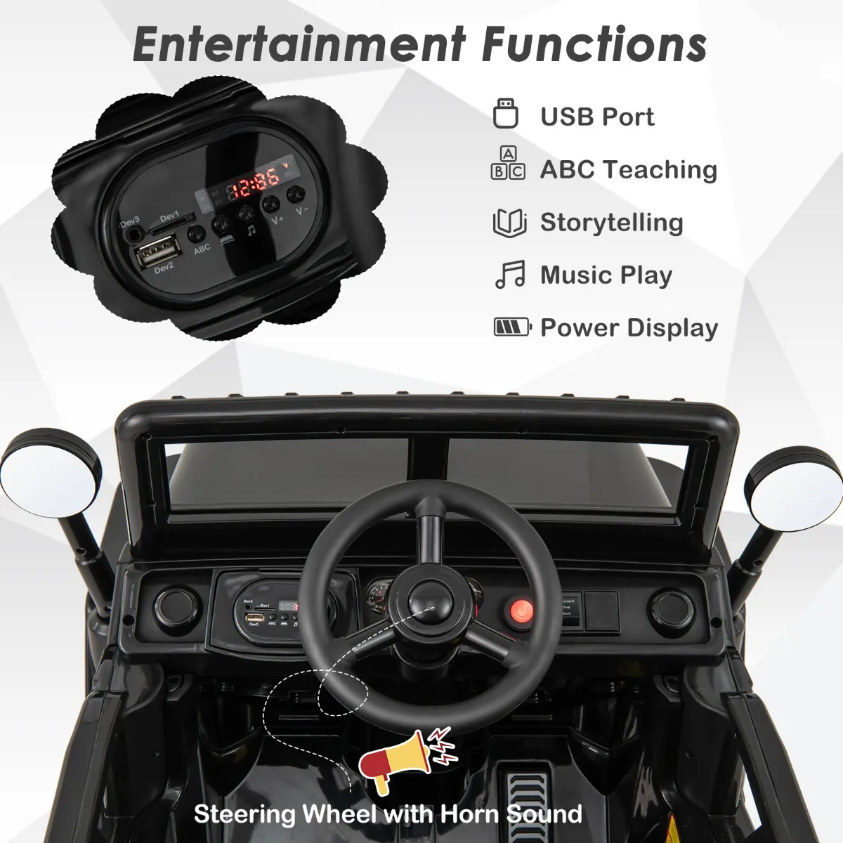 Met onze 12V-truck kunnen kinderen rijden met het gebruiksvriendelijke stuur en pedaal, of kunnen ouders het overnemen met de afstandsbediening. De oplaadbare 12V-batterij en krachtige motoren zorgen voor een langere speeltijd. Uitgerust met een handvat en transportwielen, gemakkelijk te verplaatsen en op te bergen. LED-koplampen, geïntegreerde muziek en diverse geluidseffecten zorgen voor eindeloos vermaak voor de kleintjes. Antislipwielen werken goed op verschillende soorten terrein, voor binnen- en buitengebruik.