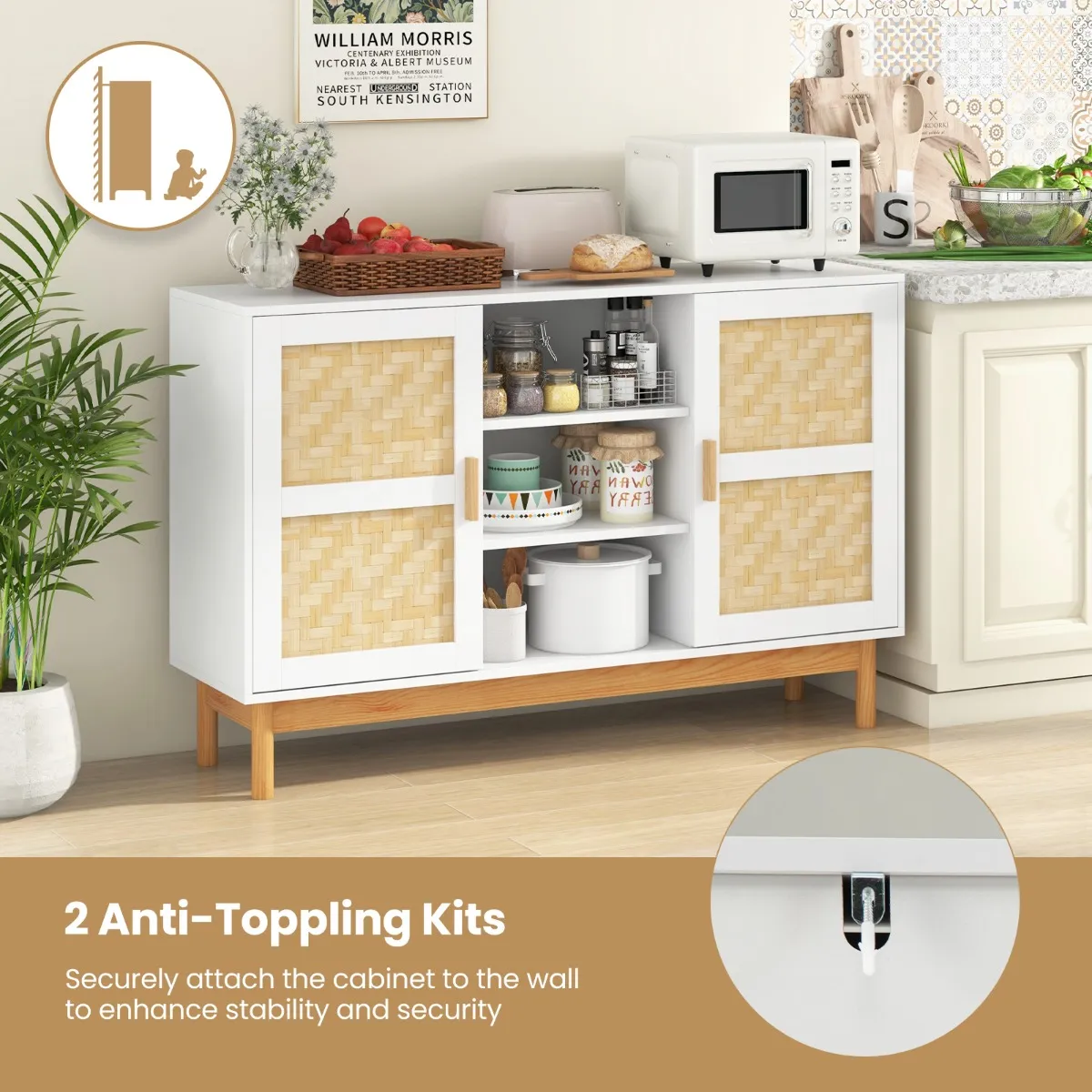 Dit dressoir is vervaardigd met ingewikkelde decoraties van bamboeriet en zal de esthetiek van elke kamer verbeteren.