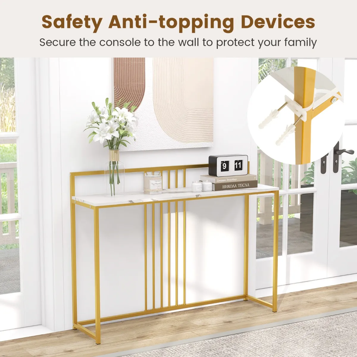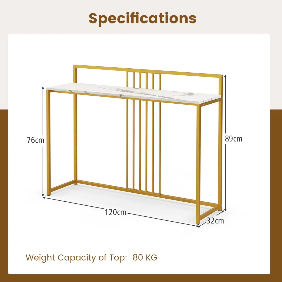 Elegante consoletafel : Deze glamoureuze haltafel is ontworpen om de toon van je interieur te versterken. Met zijn onberispelijke combinatie van een faux marmeren blad en vergulde metalen poten voegt deze tafel elegantie en verfijning toe aan elke kamer.