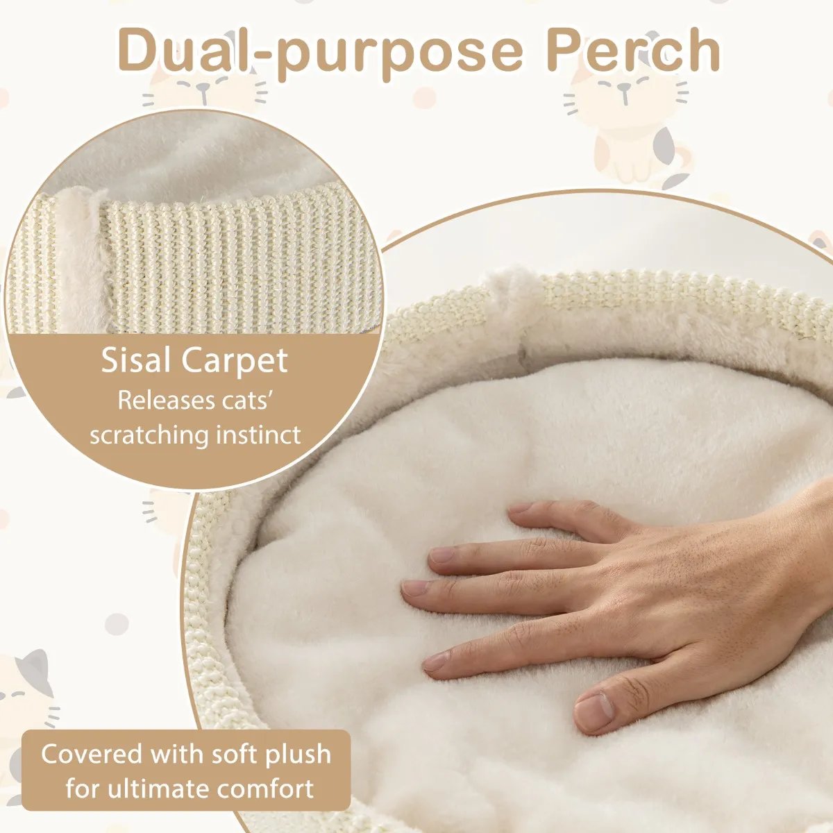 【Pluche zitstok voor twee doeleinden】 De bovenste zitstok is bekleed met zacht pluche materiaal, waardoor je kat het ultieme comfort heeft om te luieren of te dutten. Bovendien is de buitenkant van de zitstok bedekt met een sisalmat om katten aan te moedigen aan hun klauwen te krabben.