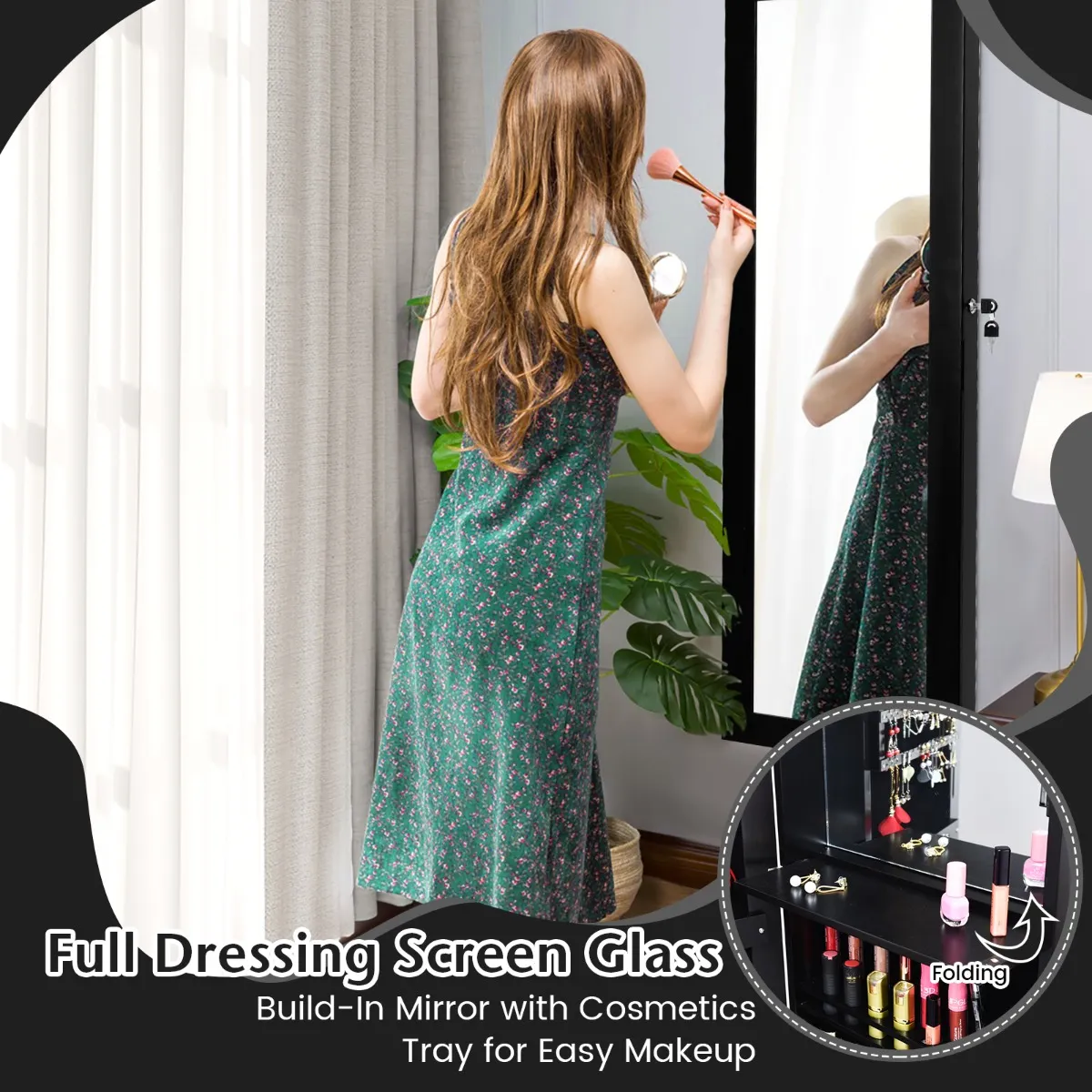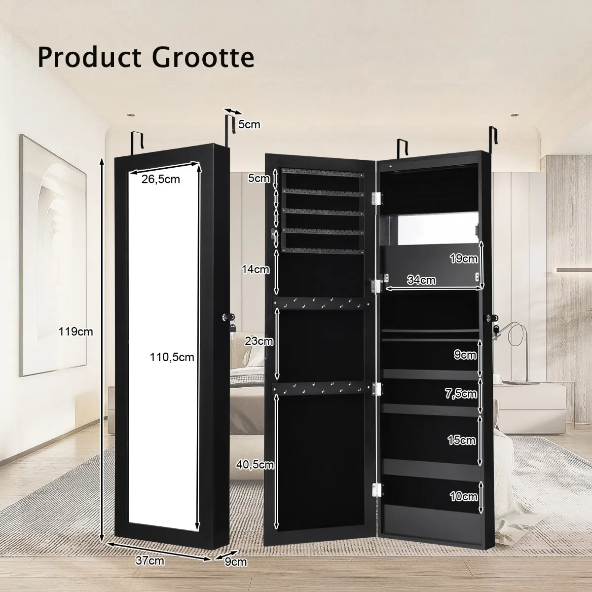 【2-in-1 sieradenkast met spiegel】: De sieradenorganizer is een combinatie van een full-body spiegel en een sieradenkast en je kunt van beide voordelen op één plaats genieten. De full-body frontspiegel meet 26,5 × 110,5 cm (l x h), zodat je je bij het opmaken van top tot teen kunt zien.