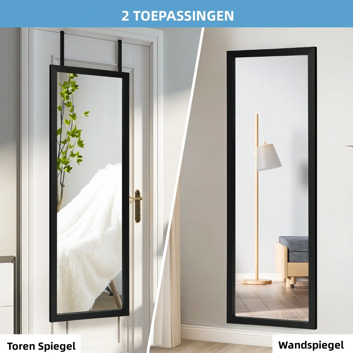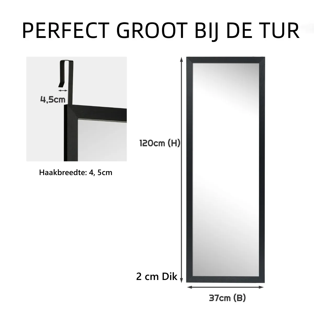 Klassieke spiegel voor het hele lichaam: Deze spiegel van 120 cm x 37 cm is praktisch bij het aankleden omdat hij een blik van top tot teen mogelijk maakt. De haken zijn elk 5 cm breed en daardoor geschikt voor de meeste deuren.