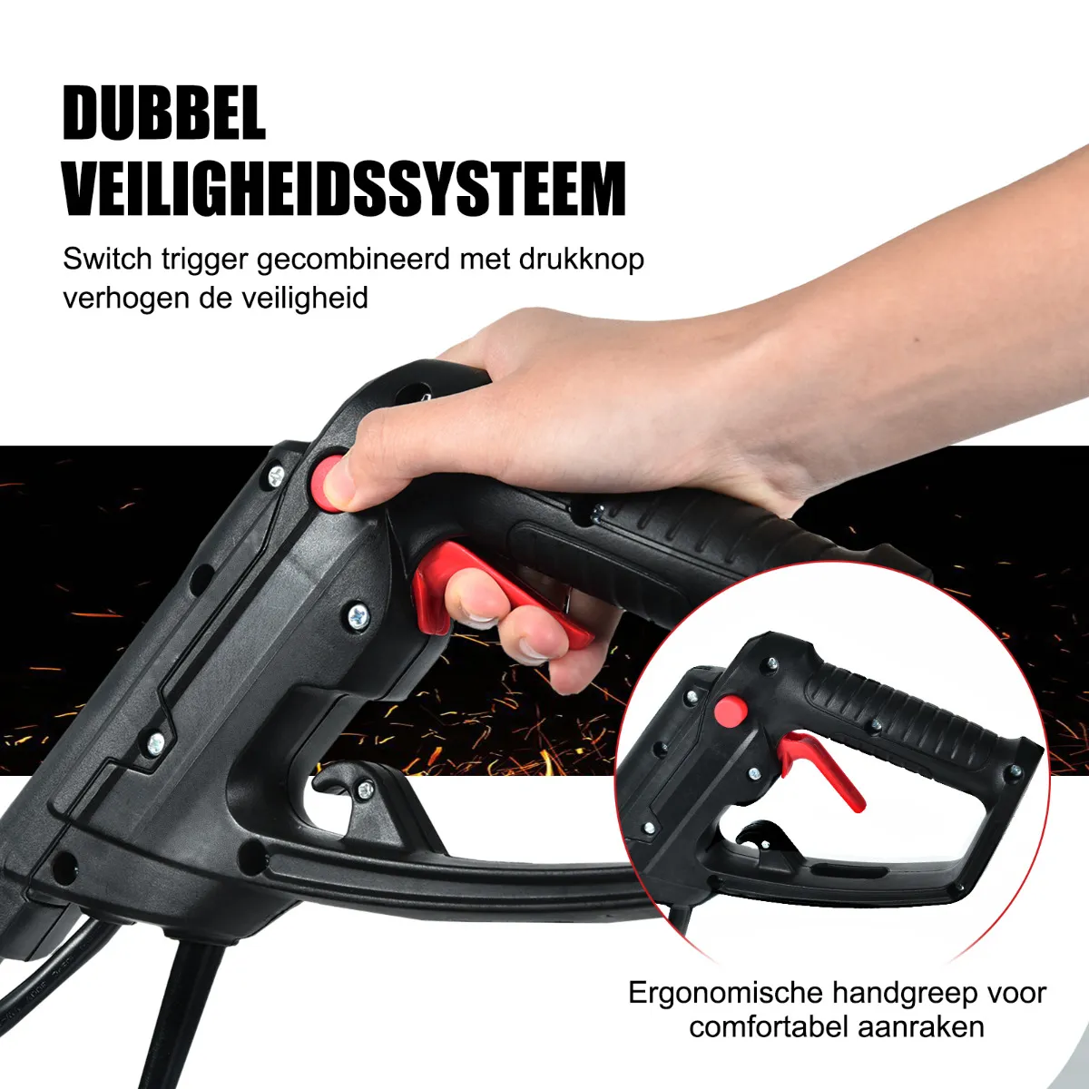 Dubbele veiligheidsschakelaar om uw veiligheid tijdens het gebruik te garanderen
