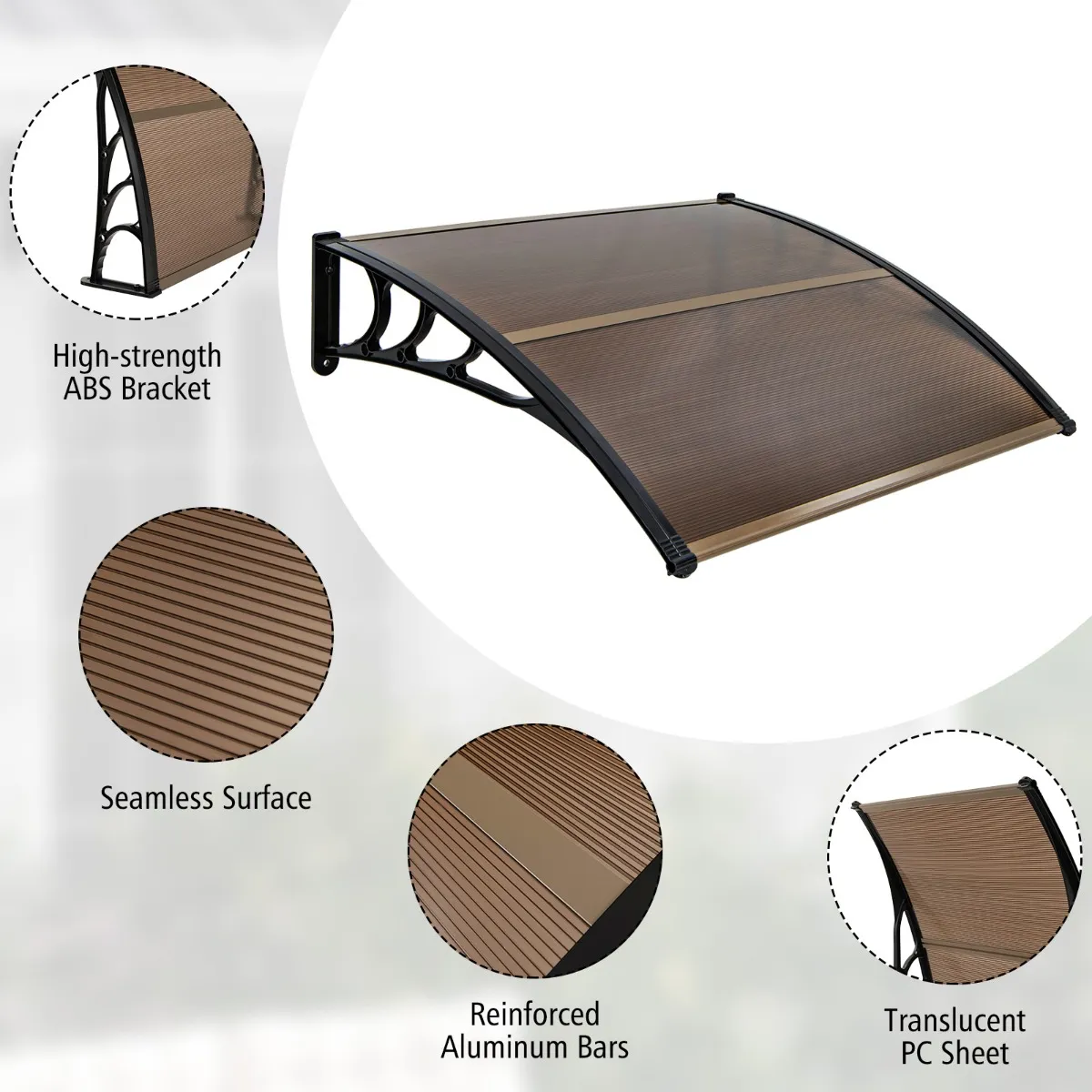 【Robuuste constructie】: De luifel voor de voordeur bestaat uit hoogwaardige PC-platen, solide ABS-driehoekige steunen en stabiele aluminium stangen, die effectief roestvorming kunnen weerstaan en een langdurige duurzaamheid kunnen garanderen. De holle panelen kunnen bovendien helpen om de hitte van de brandende zon te verminderen.