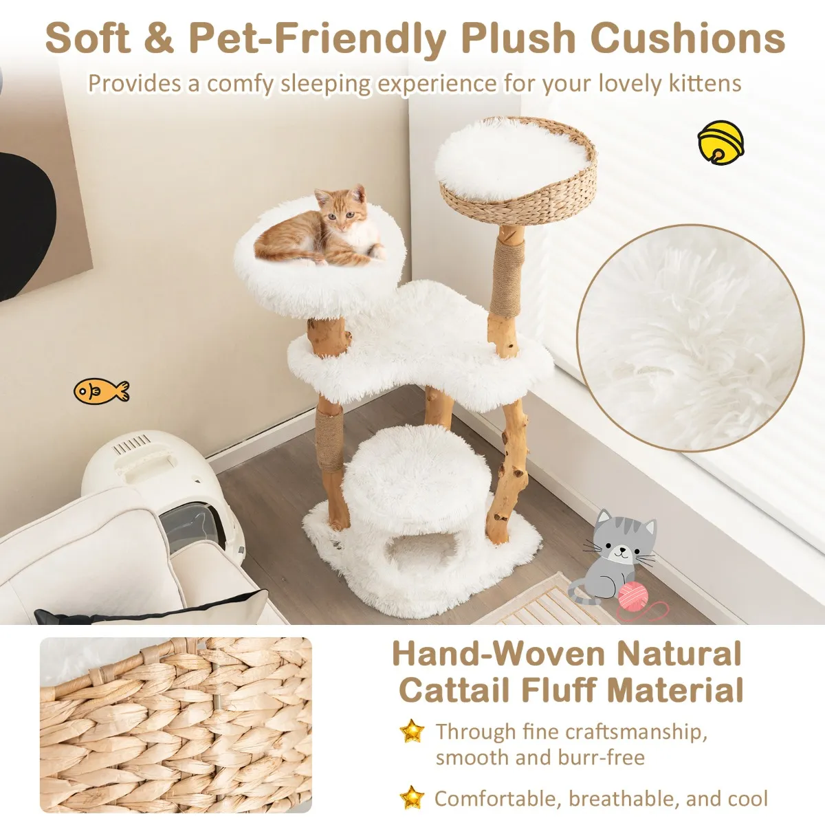Comfortabele slaapervaring: de krabpaal is bedekt met zachte, huisdiervriendelijke pluche kussens, die warme, uitnodigende oppervlakken bieden voor je schattige katjes om op te rusten en een dutje te doen. Bovendien is de bovenste zitstok gemaakt van een natuurlijk, handgeweven pluchen kattenstaartmateriaal, voor een ademende en frisse slaapervaring.