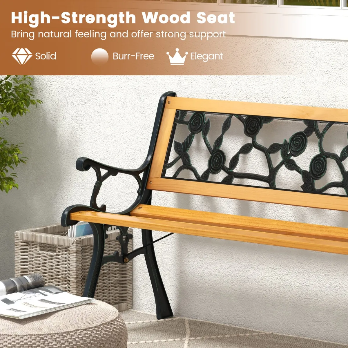 De perfecte combinatie van een stevig gegoten metalen frame en een zeer sterke houten zitting zorgt voor onovertroffen stabiliteit en duurzaamheid. Deze bank biedt plaats aan maximaal 3 personen en is ideaal voor gezellige bijeenkomsten of rustige momenten alleen in uw tuin, veranda of achtertuin. Het elegante design met verleidelijke patronen op de rugleuning en gebogen armleuningen maakt deze bank tot een opvallende toevoeging aan elke omgeving. Ervaar comfort en tijdloze schoonheid met deze goed vervaardigde tuinbank, de ultieme upgrade voor uw buitenoase.