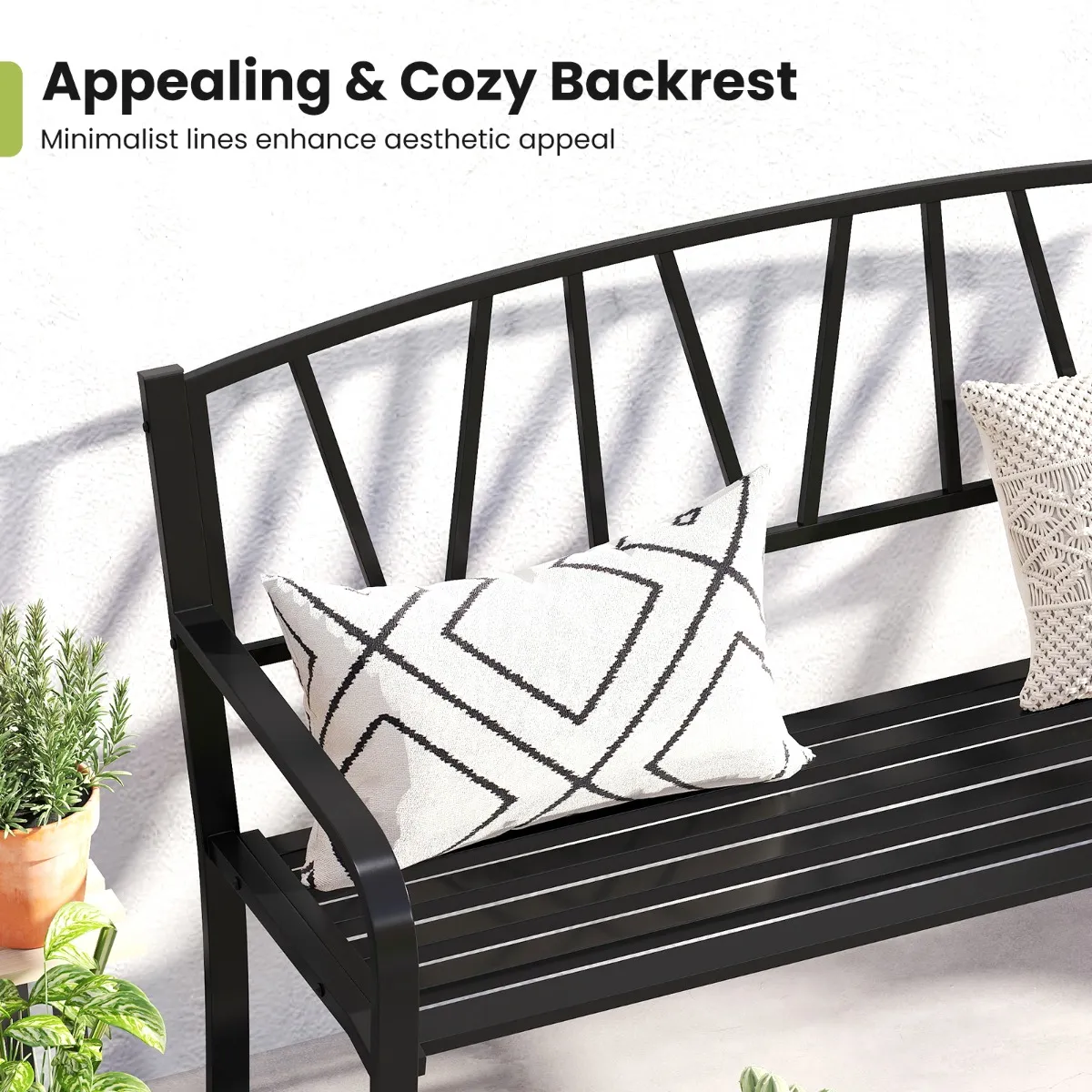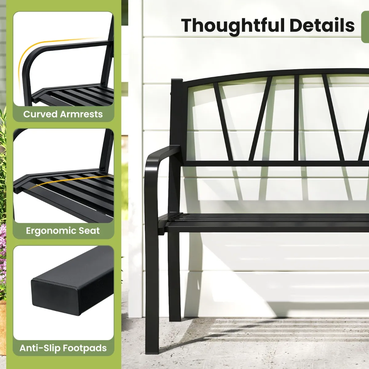 【Ergonomisch comfort】: Deze metalen bank is ontworpen voor optimaal comfort en heeft een ergonomische zitting en gebogen armleuningen, wat een ideale zitoplossing biedt voor langdurig comfort tijdens het gebruik.