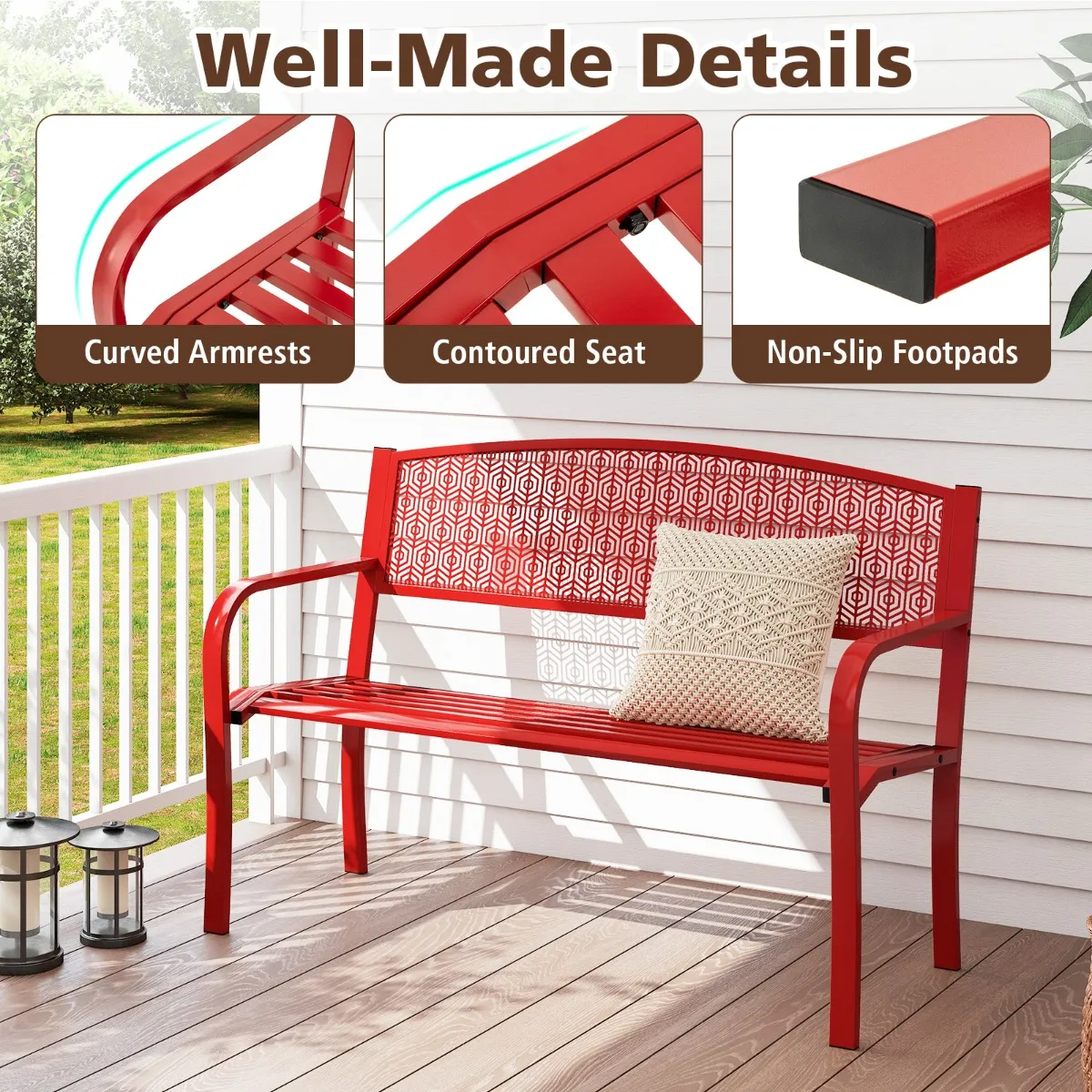 【Aanpasbaar aan elke omgeving】: Deze veelzijdige en stijlvolle metalen bank past perfect in tuinen, op terrassen of bij het zwembad. Met zijn schoonheid en functionaliteit is deze bank een perfecte keuze voor vrijetijdsactiviteiten in de buitenlucht. Totale afmetingen: 60 x 128 x 86 cm (L x B x H).