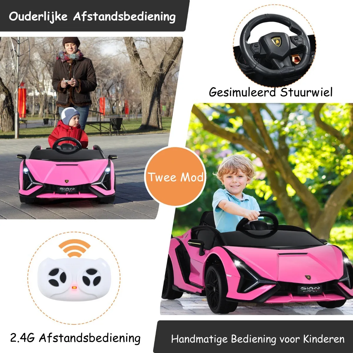 Twee rijstanden: Onze auto kan niet alleen door de kinderen zelf bestuurd worden, maar ook door de ouders met de bijgeleverde 2.4G afstandsbediening indien nodig.
