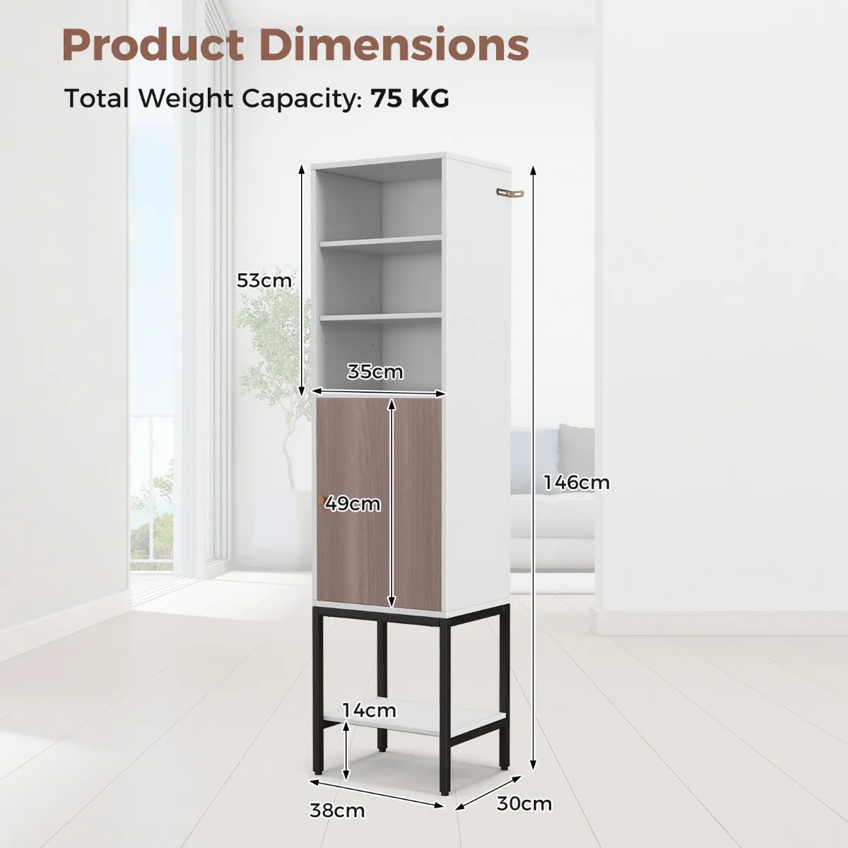 - Totale afmetingen: 38 x 30 x 146Â cm (L x B x H)