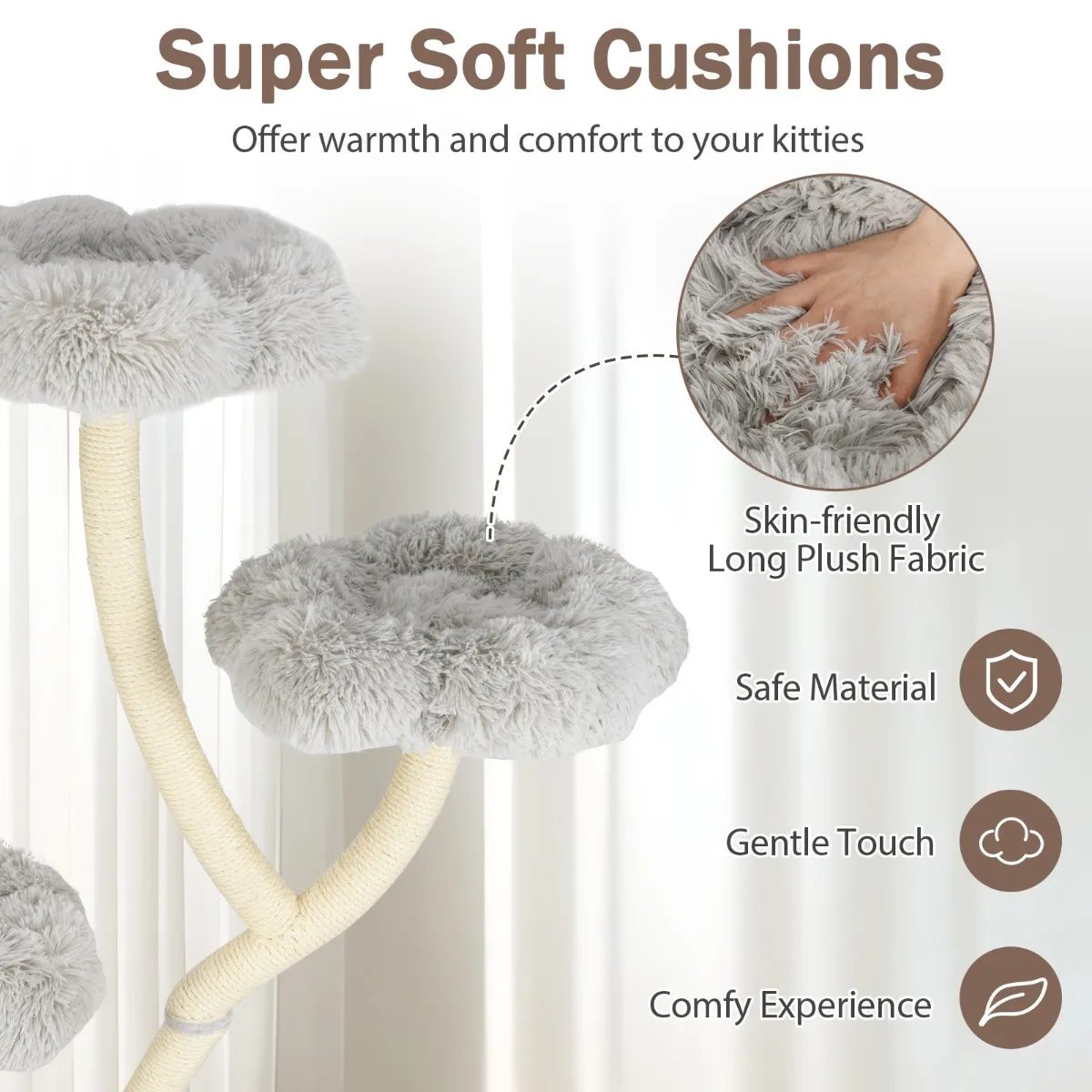 Met 4 bloemvormige platformen maakt deze krabpaal het makkelijk voor katten om te springen, uit te rusten en te relaxen. Aan de onderkant zit een comfortabel 2-in-1 kattenhok met een privéhol om in te schuilen en een gewatteerd bovenste platform om in te dutten. Bovendien bevat deze krabpaal van natuurlijk sisal om aan de instinctieve behoeften van katten te voldoen. De boom is bekleed met ultrazachte pluche stof die warmte en comfort biedt.