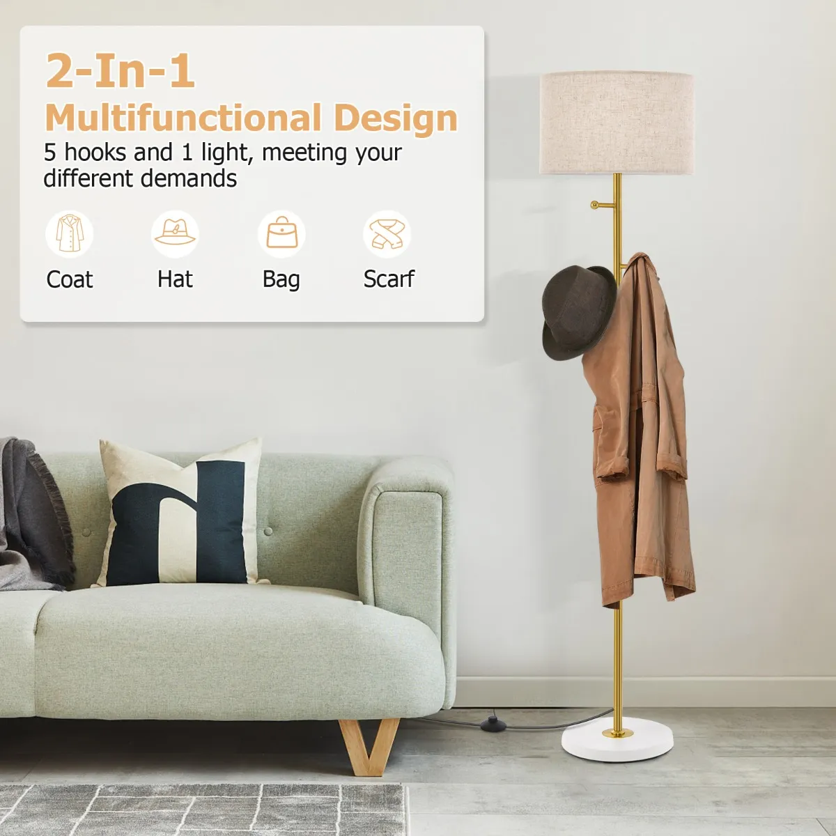 Multifunctioneel 2-in-1 ontwerp: Deze vloerlamp is ontworpen met 5 haken en 1 lamp, en voldoet aan je verschillende dagelijkse behoeften. Hij geeft niet alleen veel licht, maar is ook de perfecte plek om je jas, hoed, tas of sjaal op te hangen.