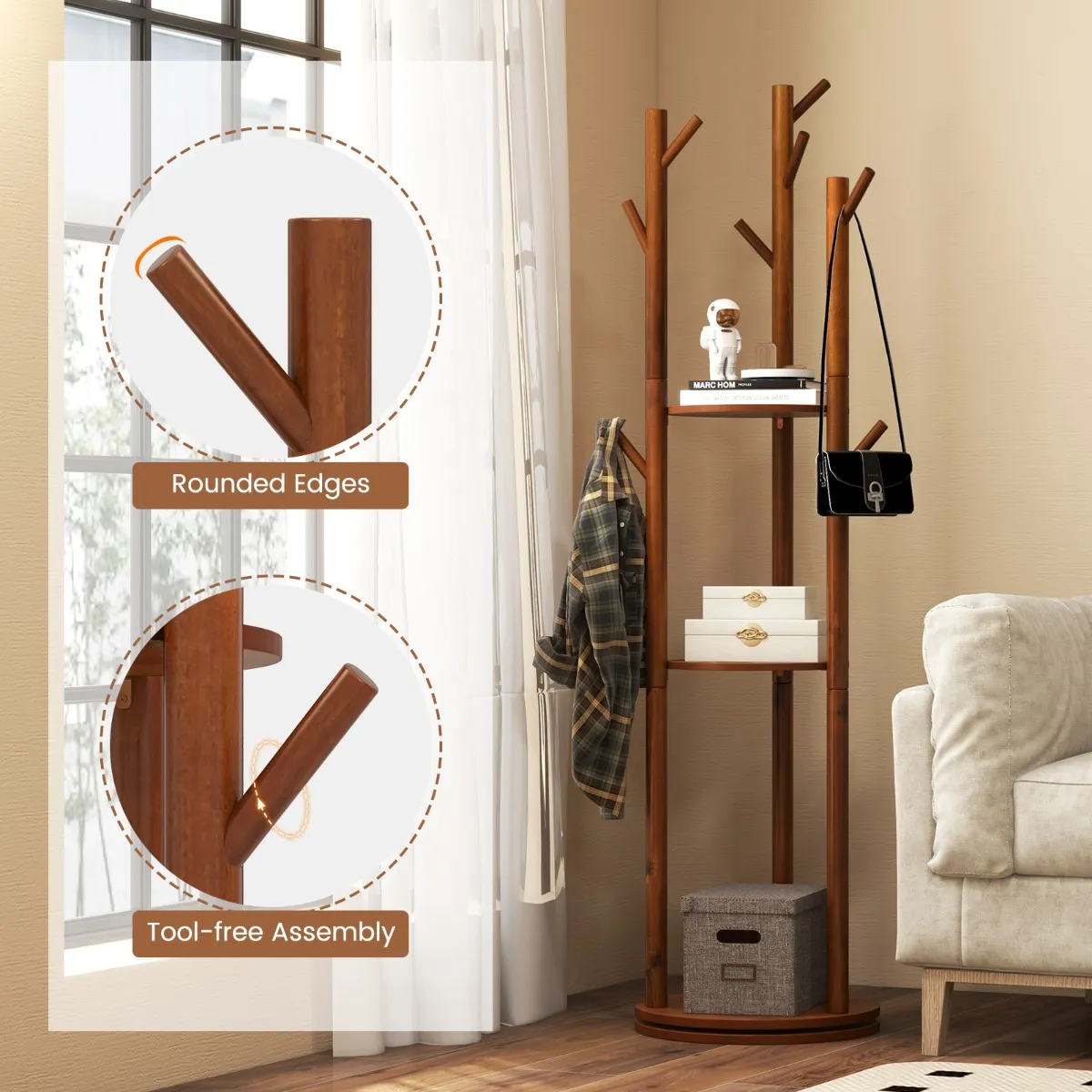 【Veel opbergruimte】 Deze roterende kapstok heeft 9 haken, die de perfecte opbergoplossing bieden voor je hoed, jas en tas. Er zijn ook 3 planken voor het uitstallen of opbergen van potplanten, opbergdozen, schoenen en meer.