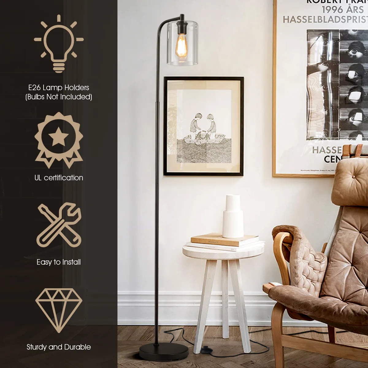 【Industriële vloerlamp】Onze metalen vloerlamp heeft een uniek industrieel ontwerp, dat snel de aandacht van andere gasten kan trekken en indruk op hen kan maken. De speciale transparante glazen lampenkap maakt hem ideaal voor verschillende decoratiestijlen zoals minimalistisch, industrieel en middeleeuws.