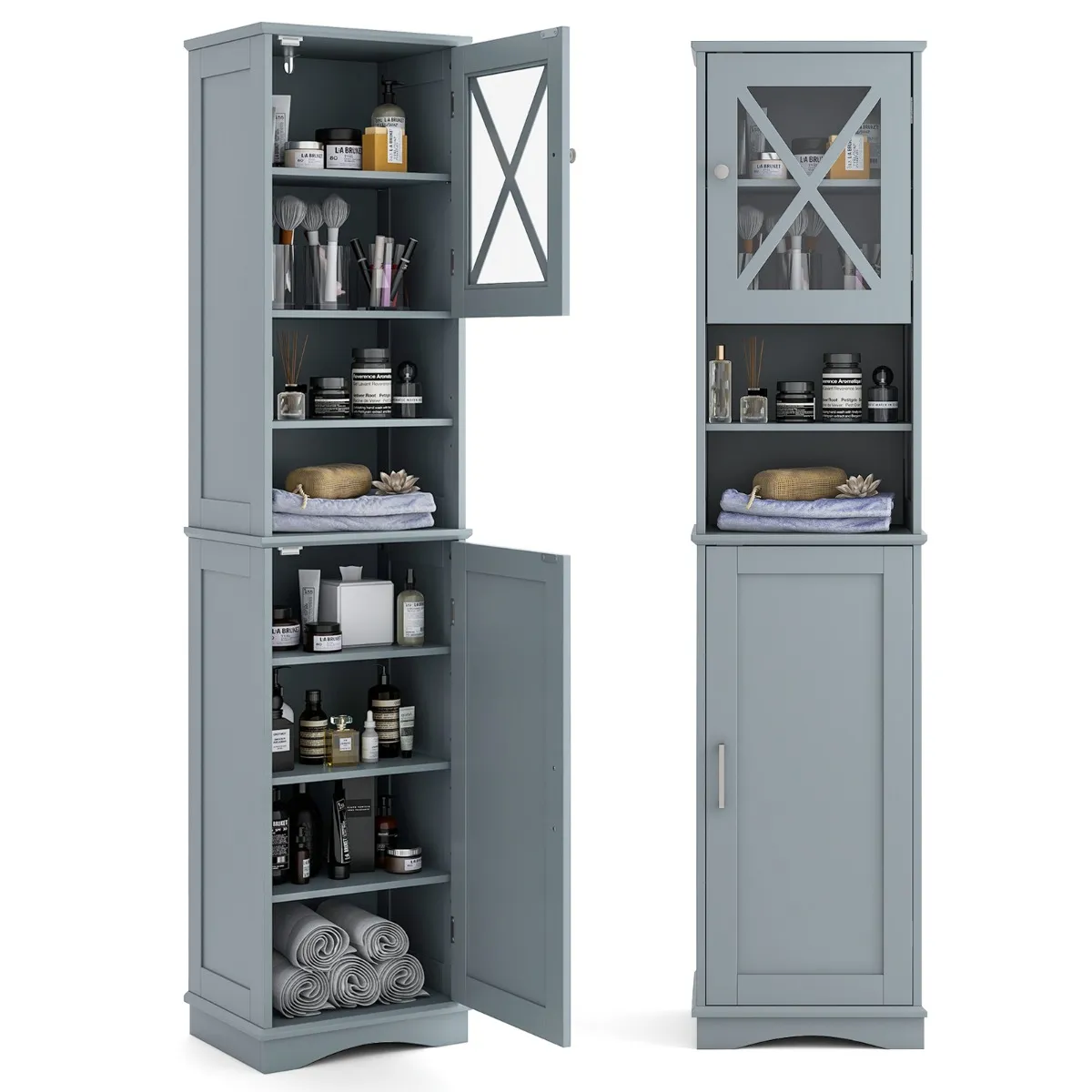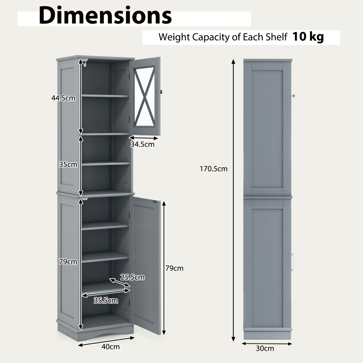 Onze hoge badkamerkast heeft 2 open compartimenten en 2 gesloten compartimenten, waardoor er voldoende ruimte is voor uw spullen. Het bevat 5 verstelbare en verwijderbare planken, waardoor u de kast aan verschillende spullen kunt aanpassen. Gemaakt van hoogwaardige acryl- en MDF-panelen met waterbestendige verf, voor langdurig gebruik. De anti-kantelset verbetert de stabiliteit en veiligheid. Dankzij het compacte ontwerp past het apparaat moeiteloos in krappe hoeken en is het ideaal voor badkamers, woonkamers, keukens en kantoren.