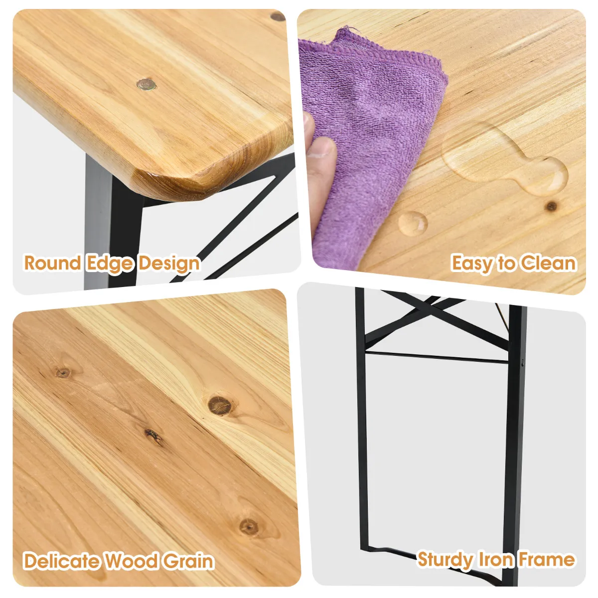 Door het inklapbare en draagbare ontwerp kan deze set gemakkelijk worden opgezet of opgevouwen en meegenomen naar verschillende buitenevenementen zoals barbecues, gazon feesten, picknicks, enz. Eenmaal opgeklapt kan hij worden opgeborgen zonder veel ruimte in beslag te nemen. De tafel en banken zijn voorzien van hoogwaardig dennenhout en een stevig stalen frame, dat duurzaamheid en stabiliteit biedt voor gebruik op het terras en binnenshuis. U kunt de tafel in de keuken, eetkamer, kantoor, garage enz. plaatsen. Dankzij het waterdichte oppervlak kunnen de tafel en de banken gemakkelijk worden gereinigd en elke dag worden gebruikt. Het wordt volledig gemonteerd verzonden, waardoor u montagetijd bespaart.