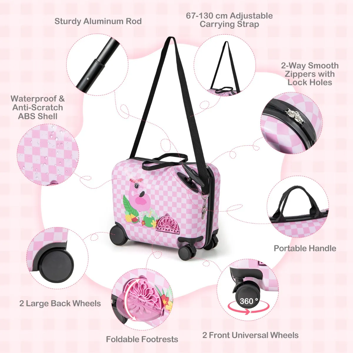 4-in-1 ontwerp: Deze harde koffer heeft een zittend en vrijstaand ontwerp met opklapbare voetsteunen, zodat kinderen kunnen zitten als ze wachten. En hij voldoet aan de beperkingen van luchtvaartmaatschappijen. De bagageset kan over de schouder of in de hand worden gedragen voor extra gemak.