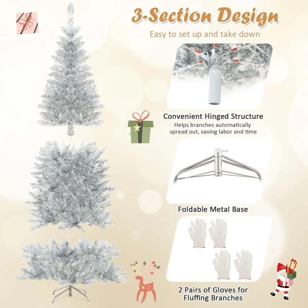 ÂOpvallende en levendige uitstraling: De voorverlichte kunstkerstboom van 180 cm heeft 790 weelderige takpunten, waardoor hij een levendig en vol uiterlijk krijgt. De boom is ontworpen met glanzende zilveren bladeren die glans en aantrekkelijkheid aan uw huis toevoegen en een verbluffende visuele uitstraling creëren.