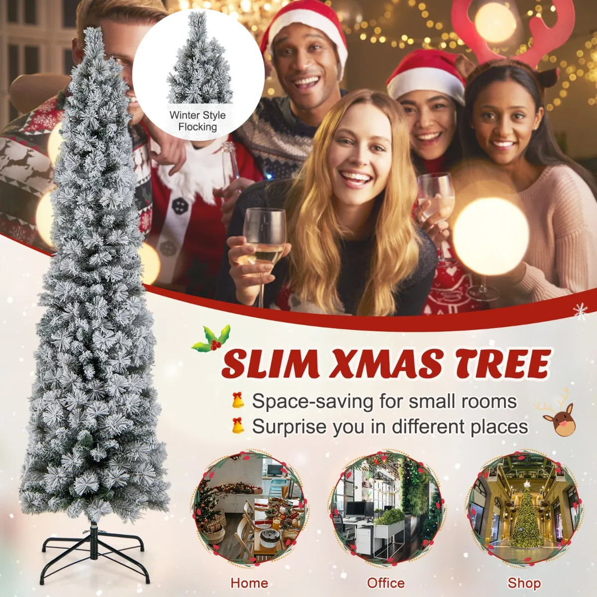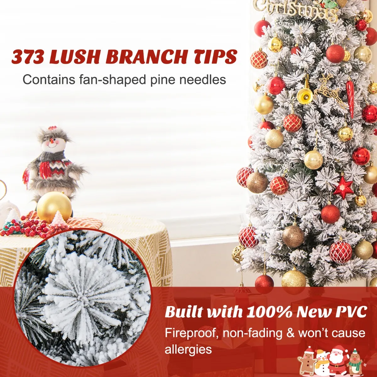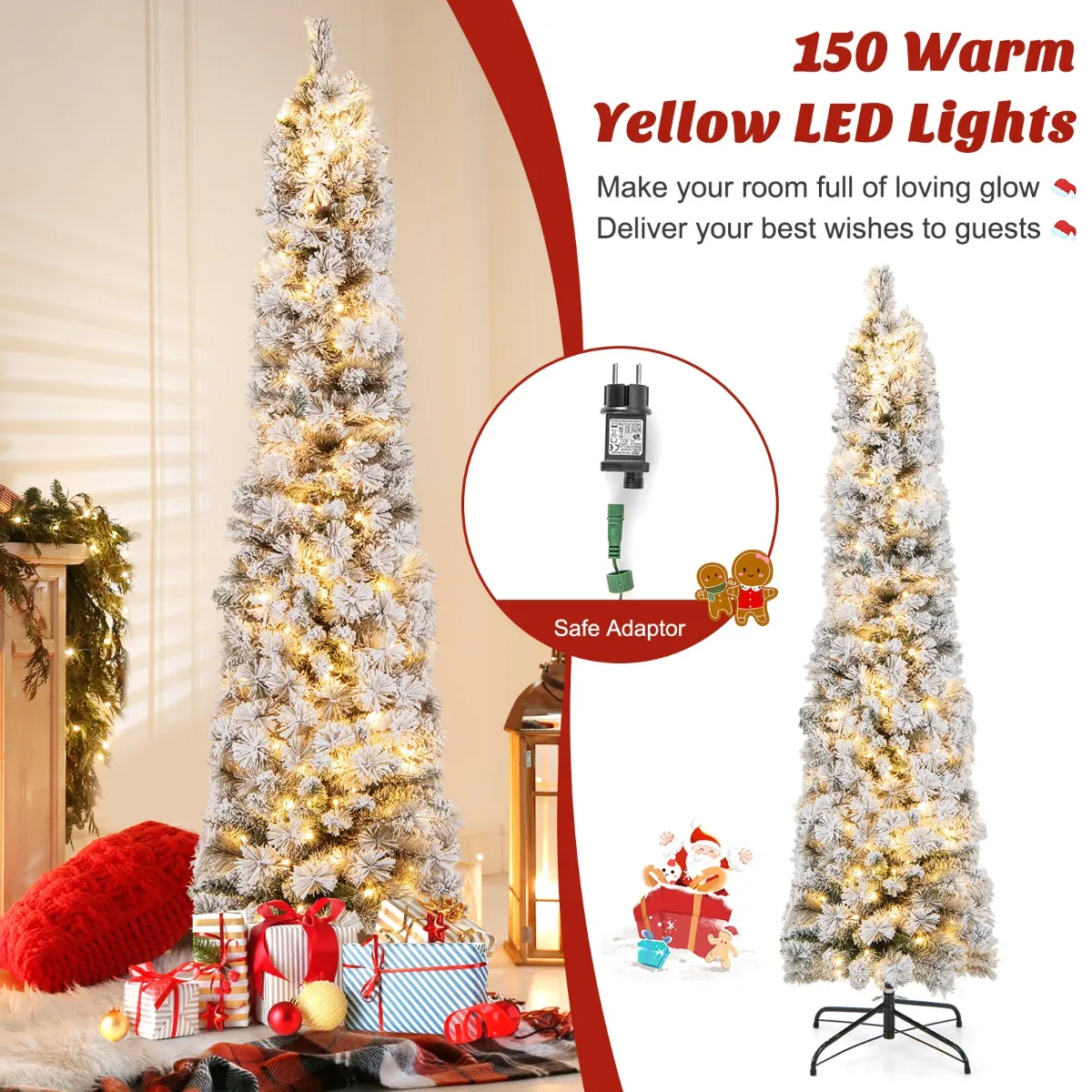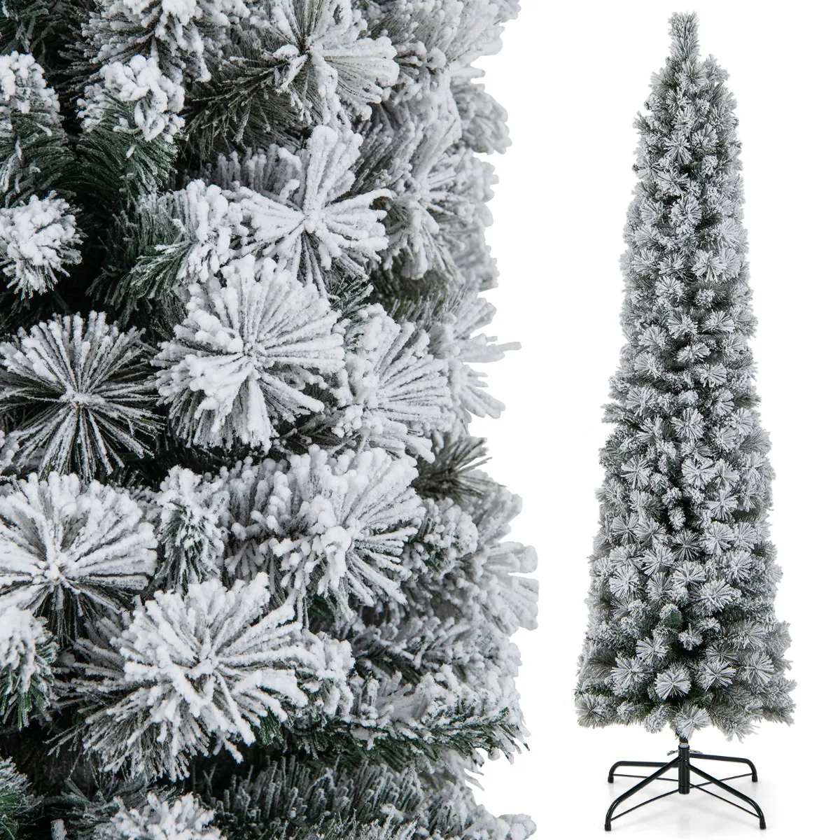 ÂLevensechte kerstdecoratie: De kerstboom beschikt over unieke bloemenvormige dennennaalden en 373 takpunten en trekt zo de aandacht van iedereen. Met zijn besneeuwde uiterlijk neemt de kerstboom je mee naar een winterwonderland. En de potloodvorm is ruimtebesparend voor kleine ruimtes.
