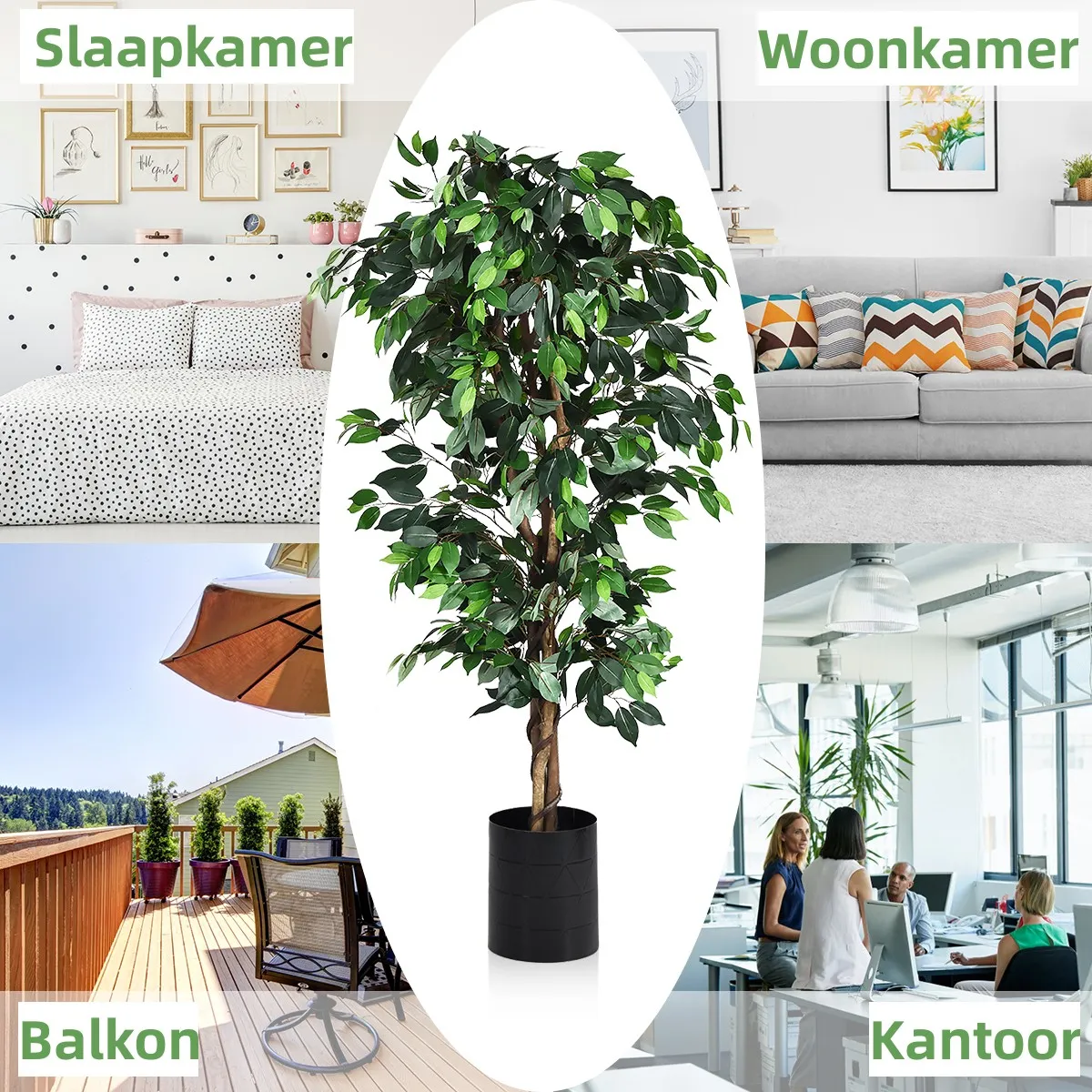 Onze kunstmatige Ficusboom simuleert een echte boom op een zeer stimulerende manier en voegt een vleugje natuur toe aan elke woonruimte.