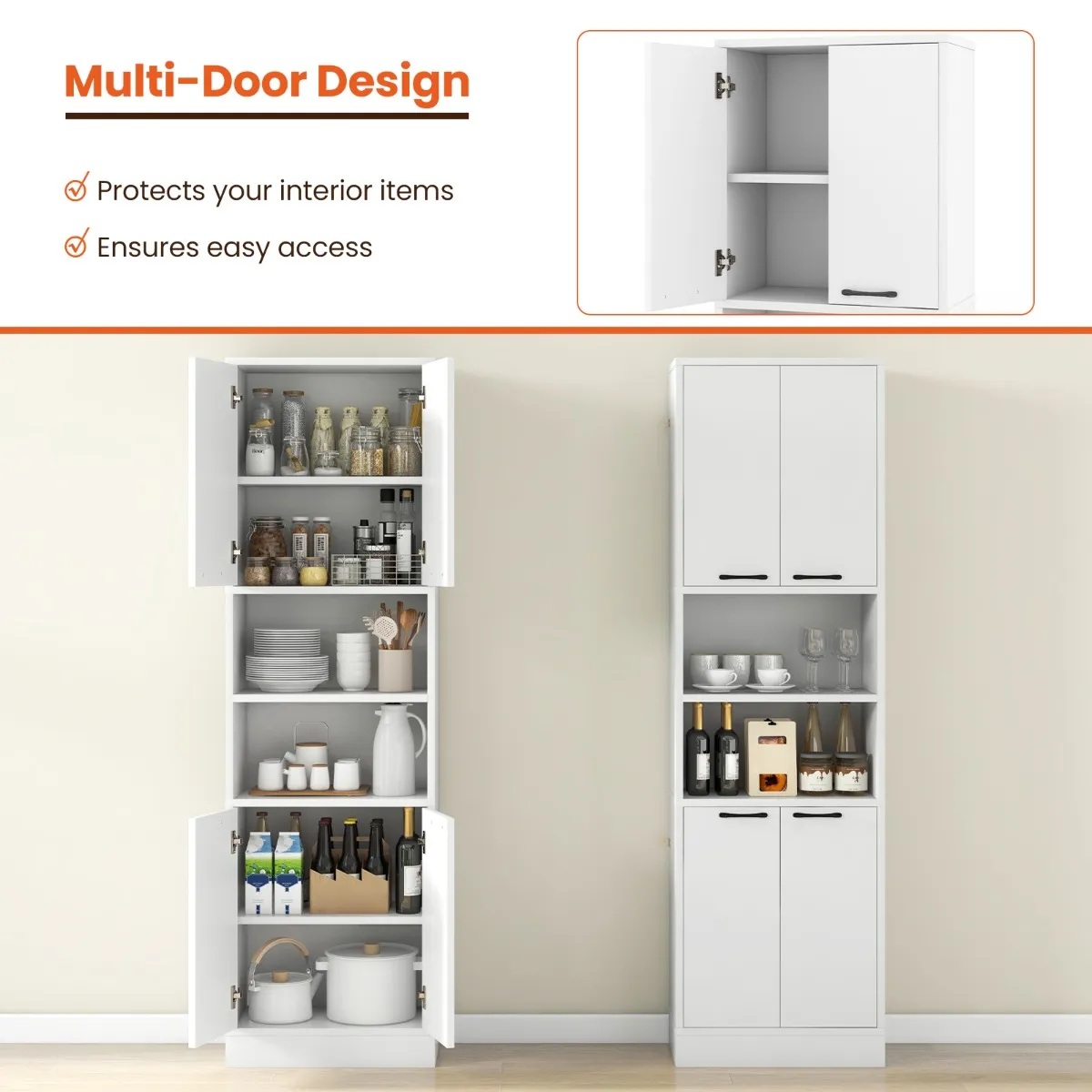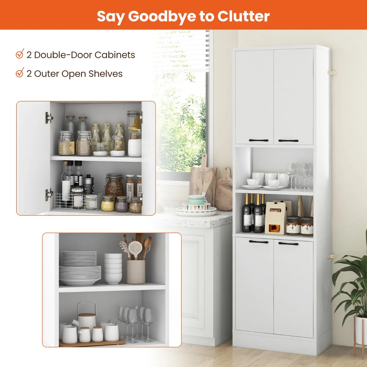 【Biedt verschillende opbergmogelijkheden】: Met 2 dubbele deurkasten en 2 open buitenplanken biedt de voorraadkast voldoende opbergruimte voor uw borden, servies of andere keukenbenodigdheden. Het houdt je spullen goed georganiseerd.
