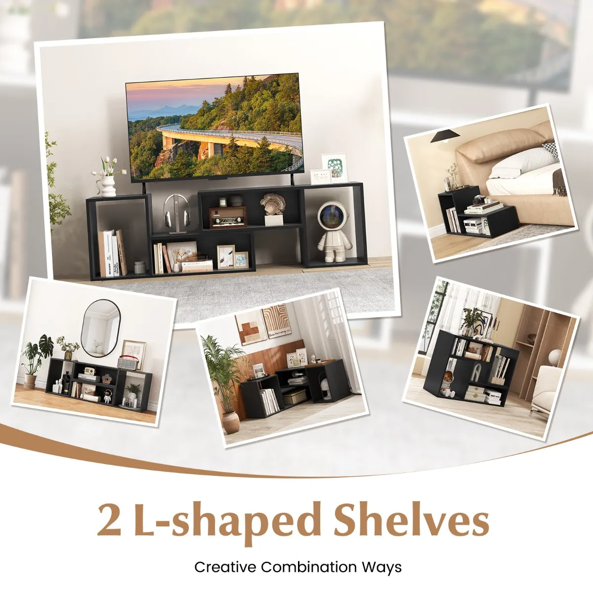 【Vrije combinatie modulair design】: Deze tv-standaard bevat 2 L-vormige planken die in verschillende lay-outs kunnen worden geplaatst om perfect bij de ruimte te passen. Het modulaire concept maakt aanpassing en flexibiliteit voor verschillende ruimtes en behoeften mogelijk.