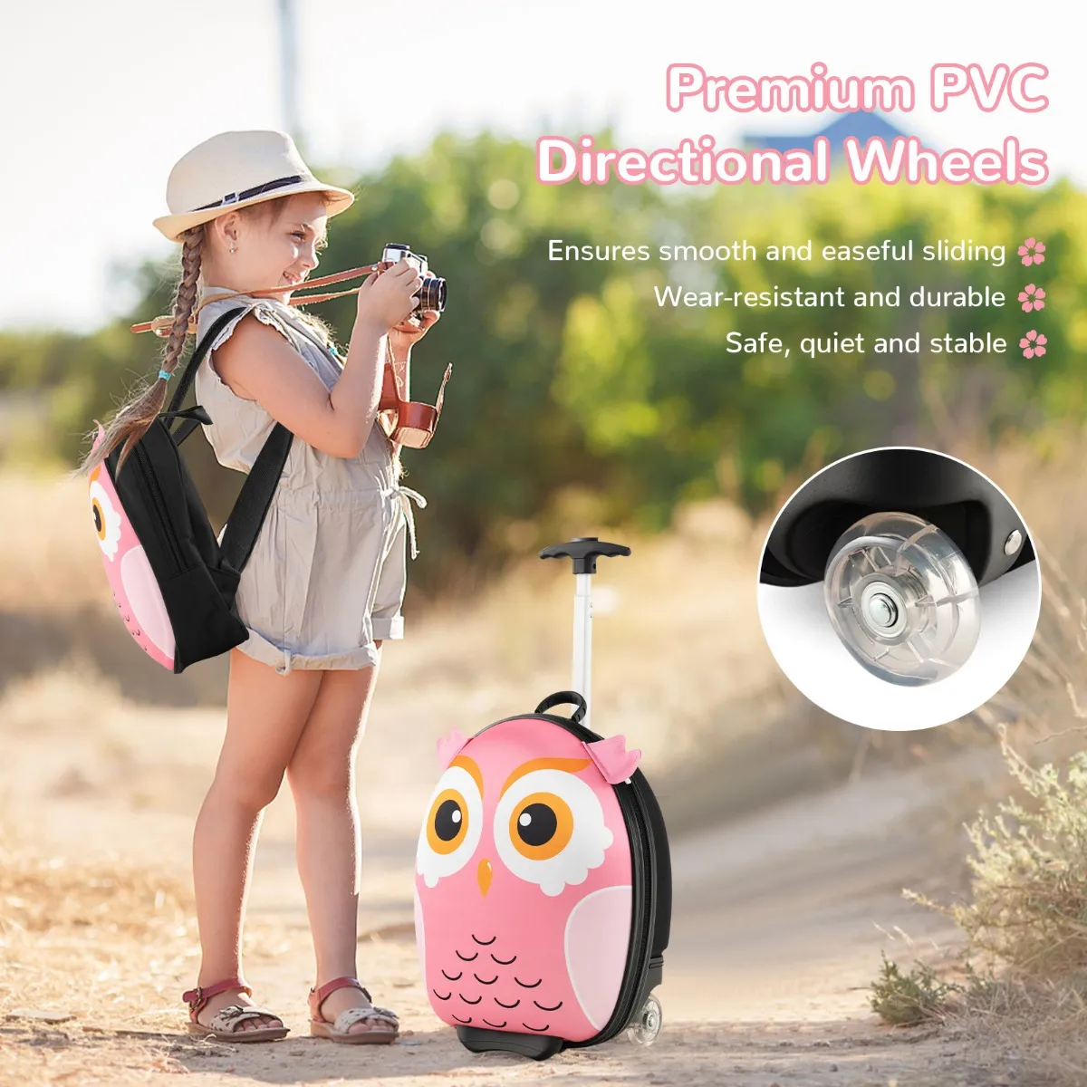 Onze 2-delige kinderkofferset bestaat uit een koffer op wieltjes van 40 cm en een rugzak van 30 cm, die zijn goedgekeurd als handbagage in vliegtuigen en waarmee je zonder problemen met je kleintjes kunt reizen. Bovendien is deze kofferset gemaakt van krasbestendige EVA-stof en verdikte polyesterstof, waardoor hij stevig en duurzaam is. Hij heeft 2 wrijvingsloze rollende wielen voor moeiteloze verplaatsing. Dankzij de leuke patronen is deze kofferset perfect als cadeau voor je jongens en meisjes. Het biedt ook voldoende opbergruimte voor de behoeften van kinderen. Of je nu reist met de trein, het vliegtuig, picknicks, schoolbezoeken of logeerpartijtjes, deze kofferset is een ideale keuze.