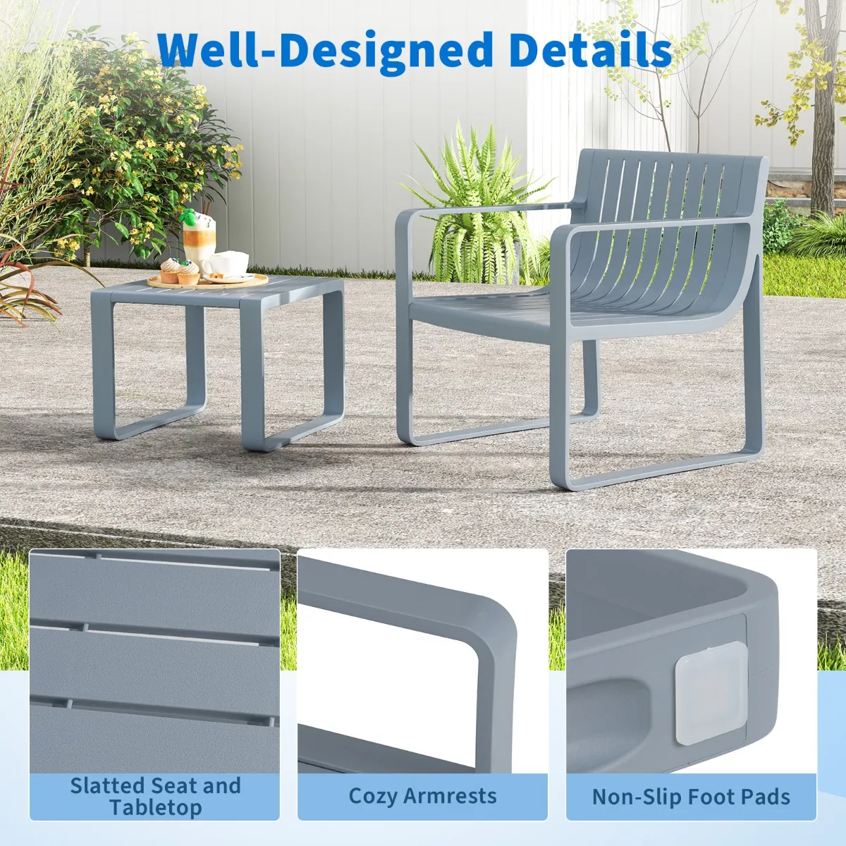 Geef uw buitenruimte een boost met deze 2-delige, weerbestendige tuinmeubelset. Deze set is gemaakt van hoogwaardig PP-materiaal en is zon- en waterbestendig. De set is verstevigd met roestvrijstalen schroeven, zodat de set het hele jaar door meegaat. De stoel is voorzien van comfortabele armleuningen en een ergonomische zitting die zich aanpast aan de rondingen van uw lichaam. Zo kunt u optimaal ontspannen en vermoeidheid tegengaan. De veelzijdige vierkante salontafel is ideaal voor het plaatsen van drankjes of als voetenbankje voor extra comfort. Deze bistroset past naadloos in uw bestaande interieur en belooft eindeloze momenten van rust en genot in uw tuin of op uw terras.