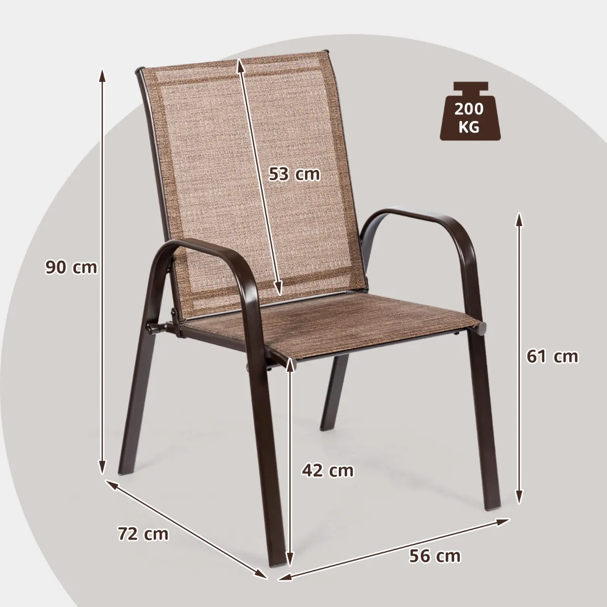 Stevig metalen frame: De bistrostoel is gemaakt van versterkte metalen buizen die bestand zijn tegen vervorming en buigen en kan tot 200 kg dragen. Het oppervlak van de metalen buizen is bedekt met een voortreffelijke coating, die roestbestendigheid en een lange levensduur garandeert.