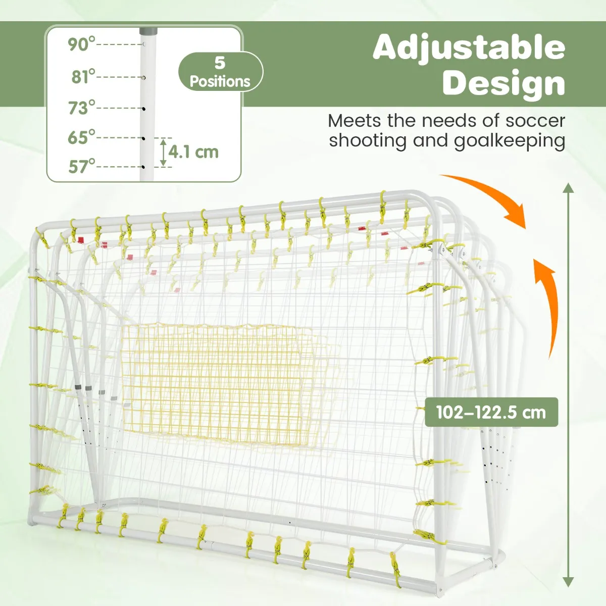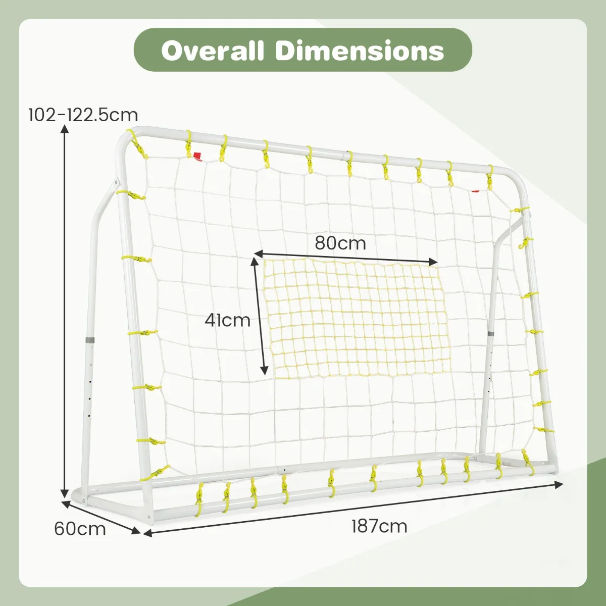 In hoek verstelbaar ontwerp: Het voetbaldoelframe van 187 cm x 102 cm kan in 5 hoeken worden aangepast (90°/81°/73°/65°/57°) zodat de rebounder de bal beter kan ontvangen en retourneren van verschillende hoeken. Dit product helpt kleintjes hun voetbalvaardigheden te verbeteren.