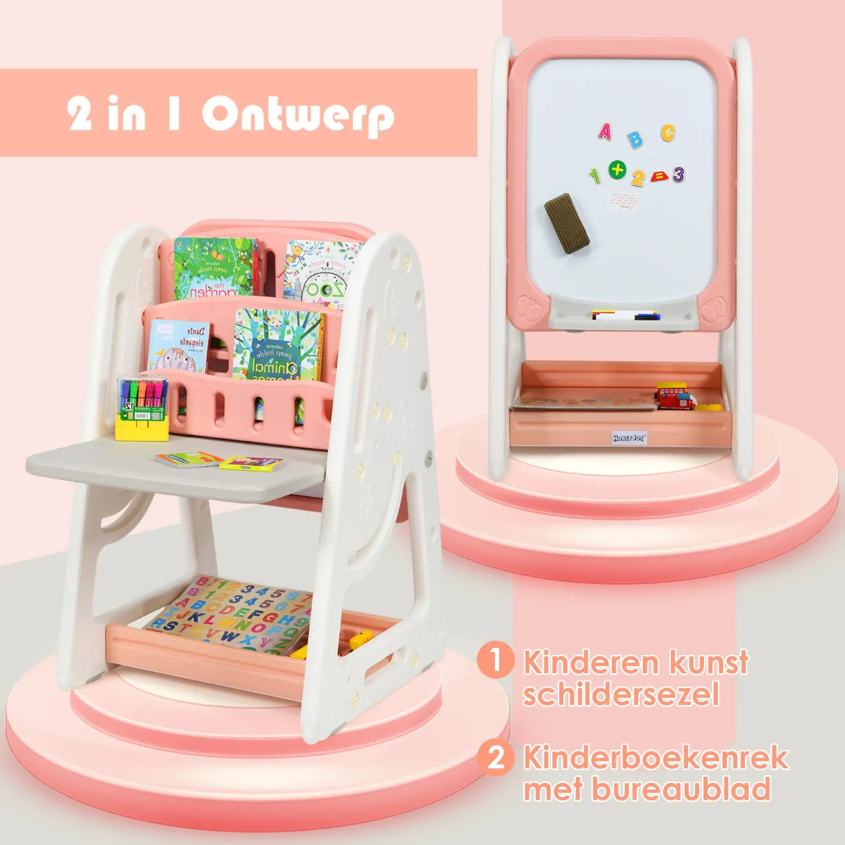 2 in 1 ontwerpAnders dan andere kinderen Schildersezel, deze kinderen educatief speelgoed dient niet alleen als de magnetische droge uitwisbord waarmee uw kleine kunstenaar om interessante schilderijen te maken, maar ook gebruiken als de kinderen boekenrek met opvouwbare bureau dat laat uw kinderen lezen of huiswerk maken.