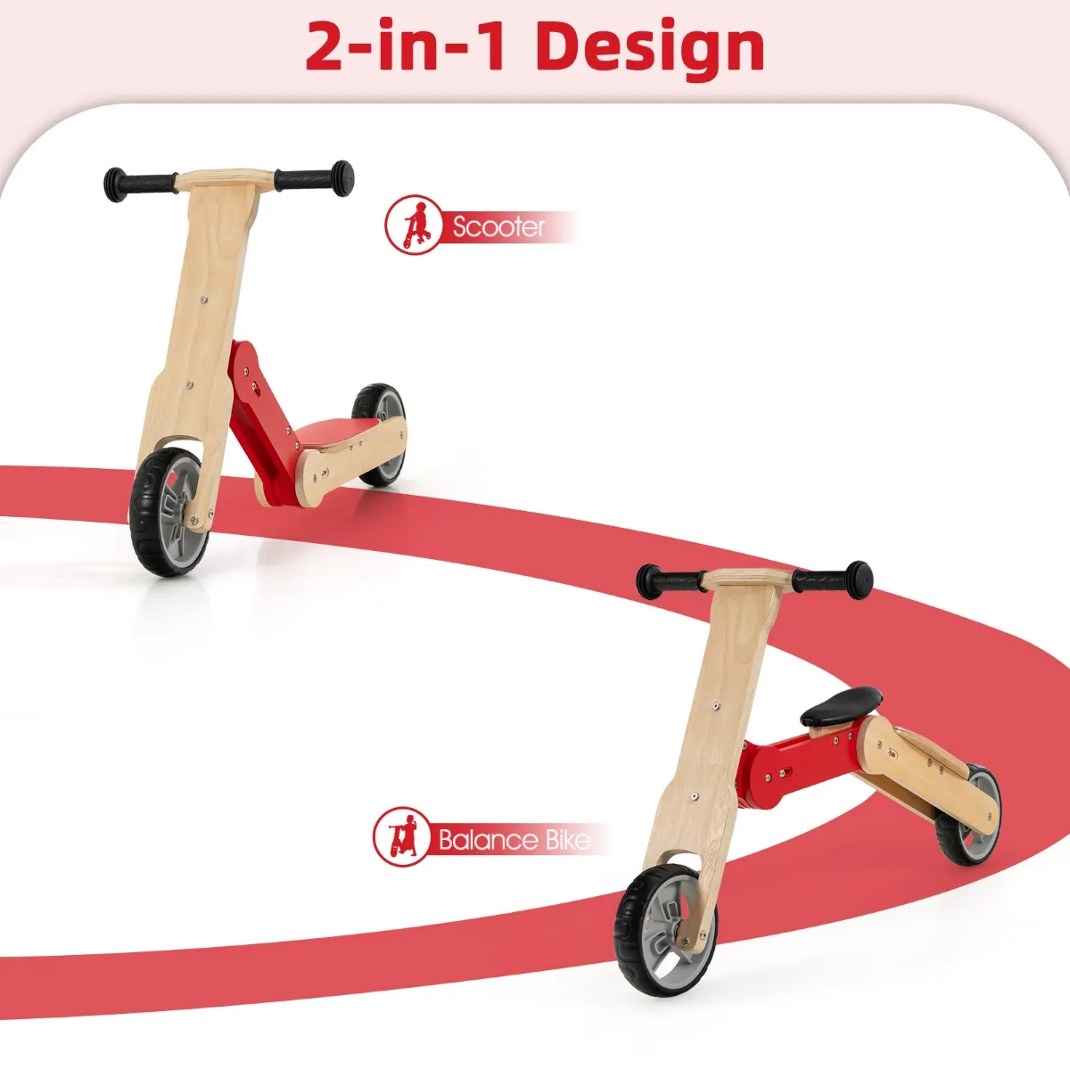 Uitgerust met 2 EVA-wielen:Â Onze converteerbare loopfiets voor kinderen is uitgerust met 2 premium EVA-wielen voor kinderen ouder dan 3 jaar om stil en soepel op verschillende vlakke wegen zoals houten vloeren, cementwegen, asfaltwegen enz. te rijden. Met onze duurzame wielen kunnen kinderen het rijplezier in 2 verschillende modi volledig benutten.