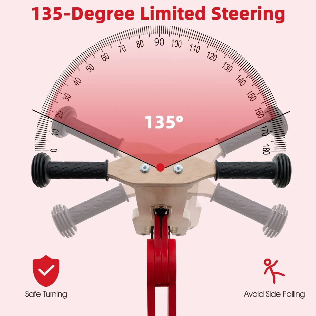 Veilige rijervaring:Â Het antislip stuur met 135 graden stuurbegrenzing zorgt voor veilig draaien en voorkomt vallen, zodat je kind een veilige rijervaring heeft. Gladde randen beschermen de kinderhuid. Tip: Het toezicht van ouders of volwassenen is altijd vereist.
