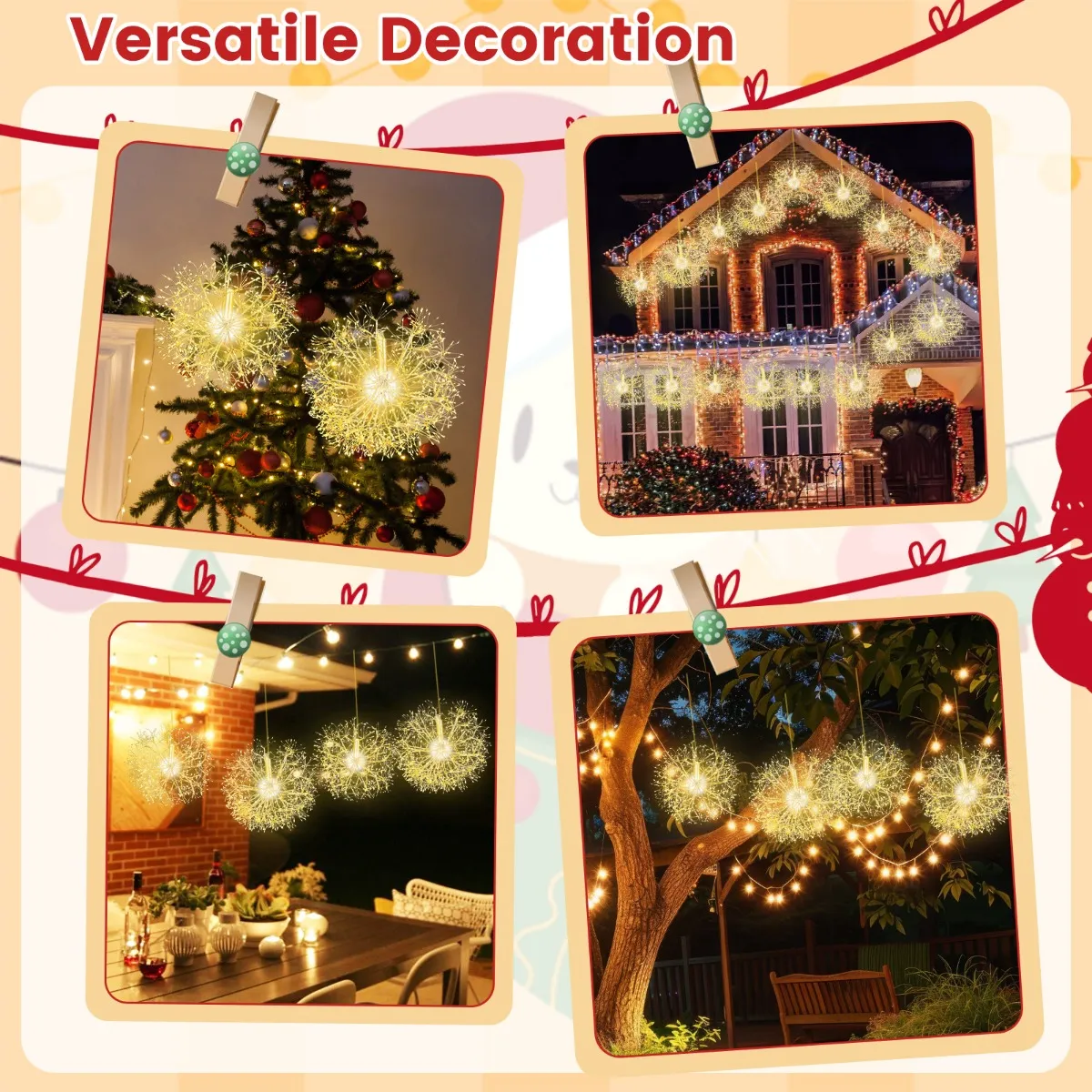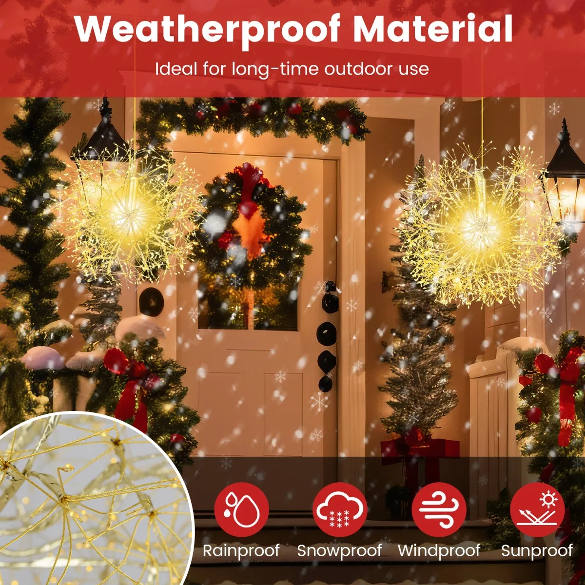 【Weerbestendig materiaal】: Deze paardenbloemlampjes zijn gemaakt van weerbestendige materialen, zodat ze de elementen kunnen weerstaan. Ze zijn ontworpen om regen, sneeuw en wind te weerstaan, zodat de ballen nog lang mooi en helder blijven.