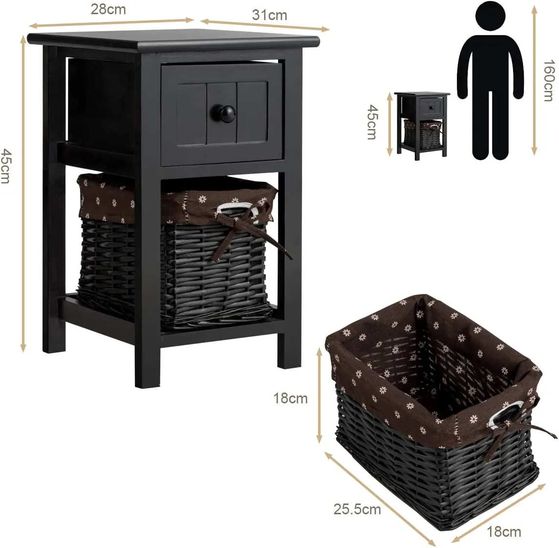 【Eenvoudig schoon te maken】Met een verflaag en het stevige houten materiaal is het oppervlak van het nachtkastje glad en plat, wat handig is om het stof dat op het nachtkastje valt te verwijderen. En het e linnen op de rieten mand is afneembaar, handig voor de dagelij kse schoonmaak van het huis.