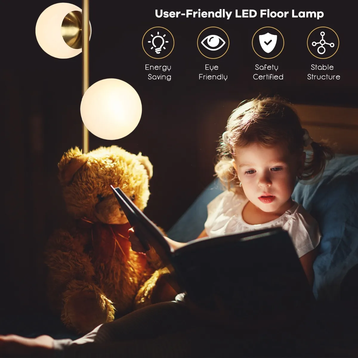 Verlicht en decoreer uw kamer met deze elegante bolvormige vloerlamp! De eenvoudige stelen en de melkglasbollen in wit creëren een verfijnde sfeer die past bij de Mid-Century, eigentijdse en moderne decoratiestijlen. U hoeft ze alleen maar in een willekeurige hoek van uw huis te plaatsen, en ze kunnen een bijzondere charme aan uw ruimte toevoegen. Deze vloerlamp straalt warm, mooi licht uit, wat een gezellige, comfortabele en goed verlichte ruimte in elke kamer van uw huis creëert. Deze bolvormige vloerlamp is een alternatief voor onaangename plafondlampen en zorgt voor zachte maar genereuze kamerbelichting om uw interieur op te fleuren. Voor extra gemak is deze lamp voorzien van een voetschakelaar waarmee u de lamp eenvoudig aan en uit kunt zetten. Deze vloerlamp is een perfecte aanvulling op uw woonkamer, slaapkamer of studeerkamer.