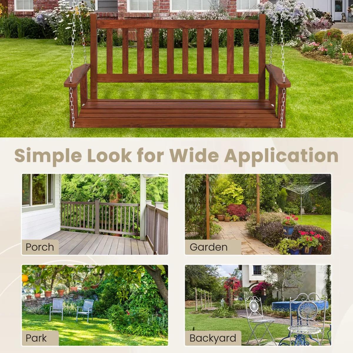 Onze buitenschommel is speciaal ontworpen voor gezinsgebruik. Verstelbare en stevige gegalvaniseerde metalen kettingen stellen u in staat om de meest geschikte schommelhoogte te vinden. U kunt het ophangen aan het plafond, aan een boom of aan een schommelstandaard en genieten van het schommelen met uw dierbaren. Gemaakt van massief populierenhout ondersteunt onze hangende bank tot 230 kg. Om u extra comfort en ontspanning te bieden, hebben we deze voorzien van een lattenrug, een gebogen zitting en gehumaniseerde armleuningen.