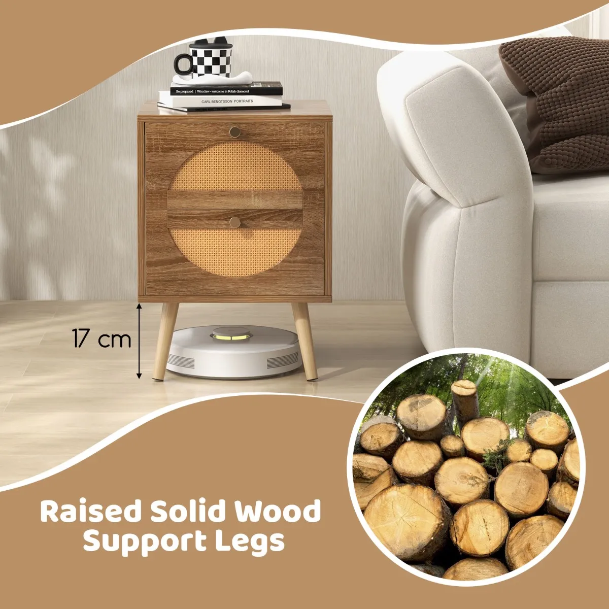 Elegant vintage en decoratief rotan voor een charmant nachtkastje in bohemienstijl