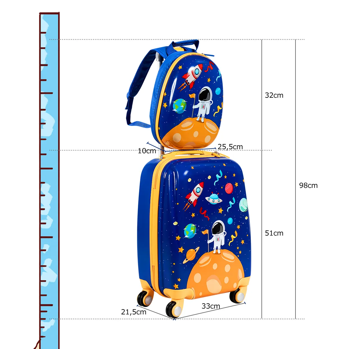 Deze prachtige koffers hebben een schattig mooi astronauten motief dat speciaal is geprint op de harde buitenkant van de koffer, wat kinderen leuk zullen vinden. De lichtgewicht is niet al te zwaar en de kinderen kunnen het zelfstandig gebruiken met voldoende capaciteit. En de geselecteerde ABS-kunststof van hoge kwaliteit en polycarbonaat zorgt ervoor dat onze kofferset een betere prestatie heeft op het gebied van antivibratie- en drukbestendigheid. 3 niveaus verstelbare aluminium legering trekstang en ontwerp om te passen in de handpalmen van kinderen. Onze trolleys en rugzakken kunnen uw kind lang vergezellen. Aarzel niet, kom het kopen. Laat de kinderen gelukkig reizen.