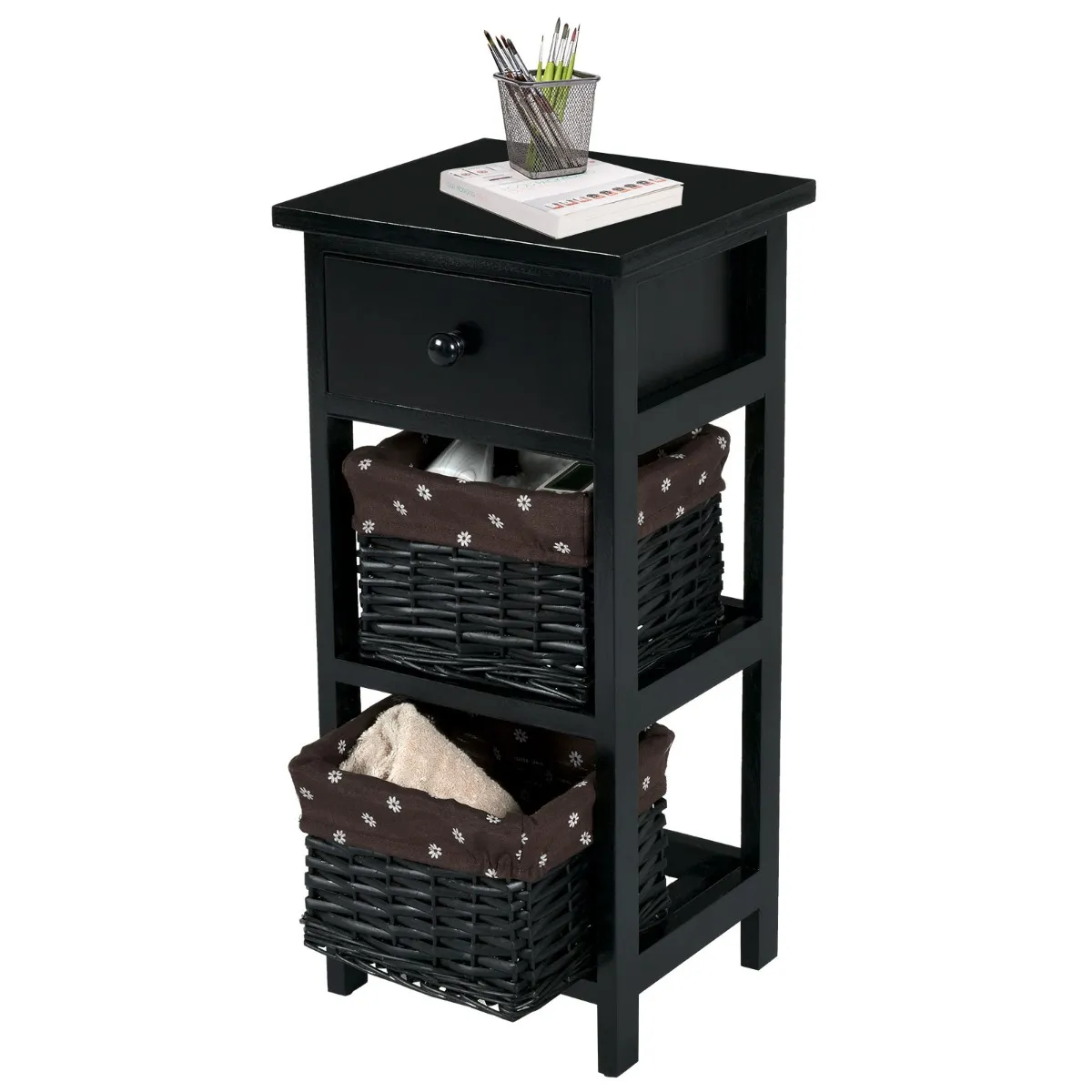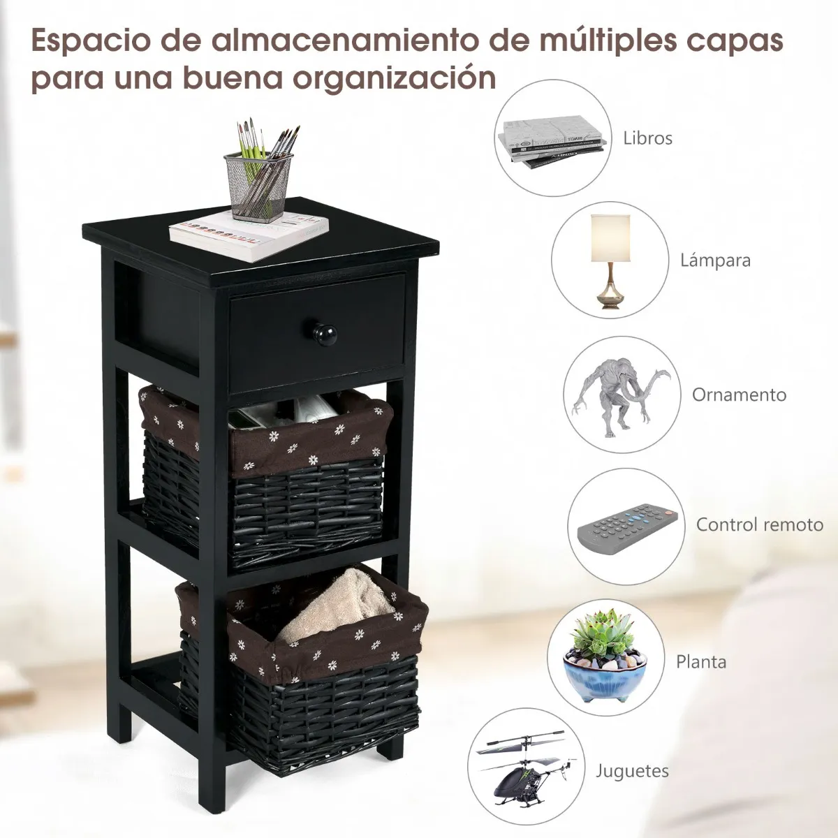 Grote Opbergruimte: Dit nachtkastje met 3 verdiepingen biedt u veel opbergruimte. Je kunt er boeken, cosmetica, ongebruikte spullen en andere dingen waar je nu geen ruimte voor hebt in kwijt. 1 lade en 2 uitneembare manden helpen u om uw spullen goed te organiseren en uw dagelijks leven te vergemakkelijken.