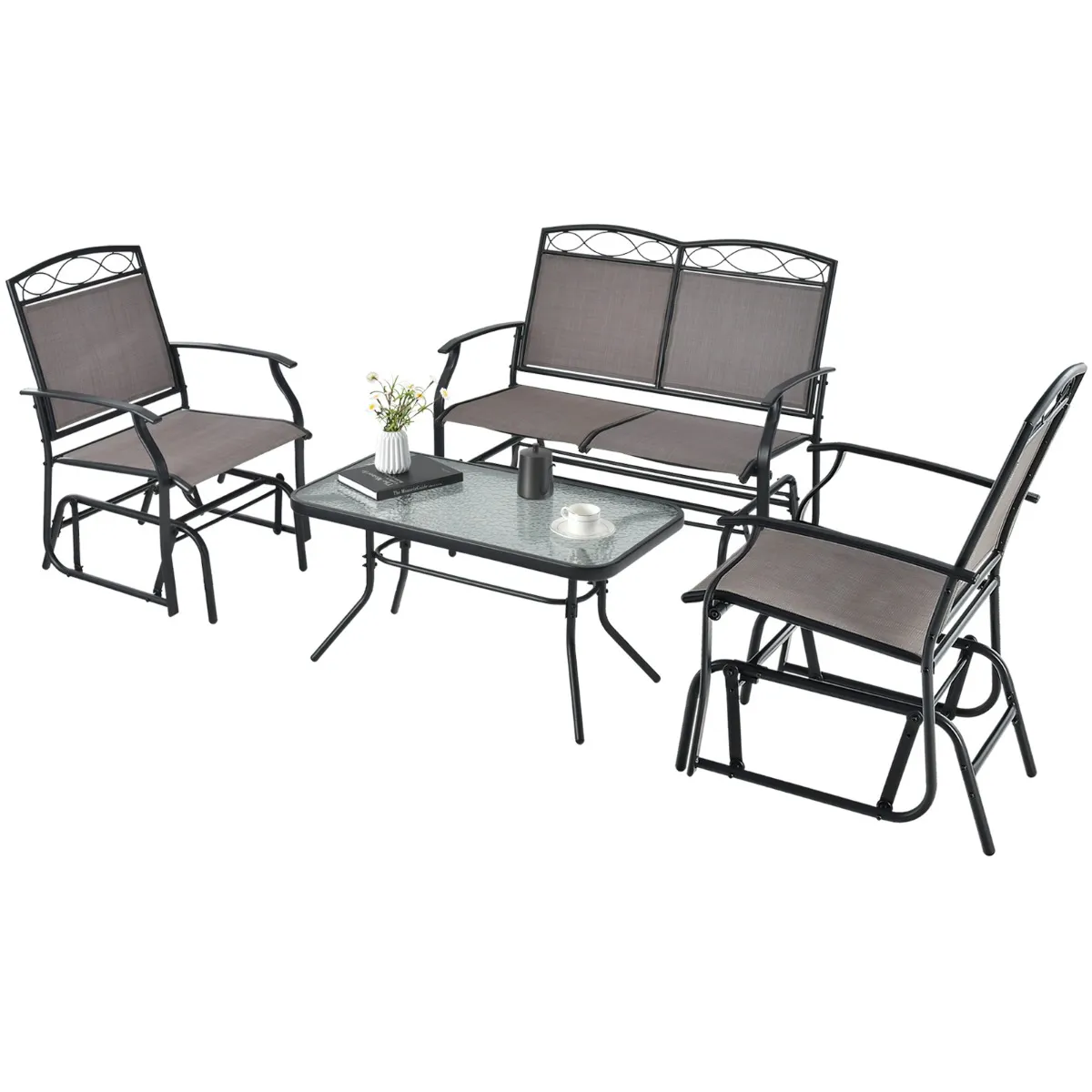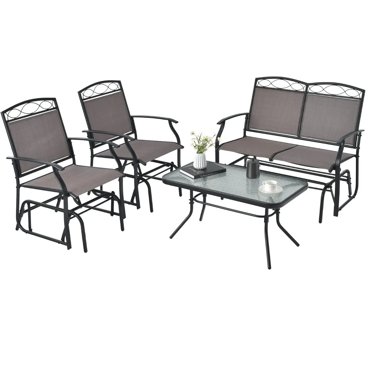 De set bestaat uit een verschuifbare tweepersoons bank en een salontafel van gehard glas, die allemaal zijn gemaakt van robuust metaal om duurzaamheid en een lange levensduur te garanderen. De meegeleverde tweezitsbank is perfect om momenten met een geliefde te delen of met veel ruimte alleen te ontspannen. Bovendien biedt de koffietafel voldoende ruimte voor dranken, snacks en andere belangrijke outdoor-gebruiksvoorwerpen en is het tafelblad van gehard glas gemakkelijk te reinigen en te onderhouden. Geniet van uren ontspanning en entertainment met deze 2-delige terrasmeubelset in gezelschap van familie en vrienden.