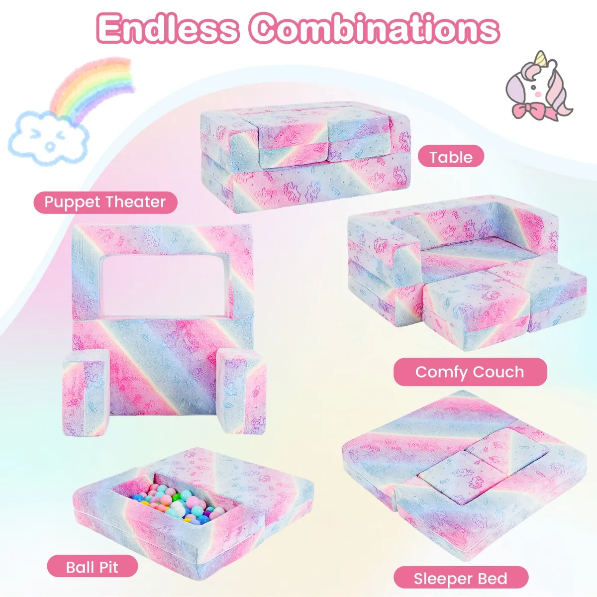 【Modulaire magie】: Onze speelbank voor kinderen verandert moeiteloos in een tafel, slaapbank, poppenkast of ballenbad voor eindeloos speelplezier. Dankzij het lichtgewicht ontwerp kunnen kinderen hun eigen ruimte creëren, de verbeelding stimuleren en dierbare herinneringen creëren.