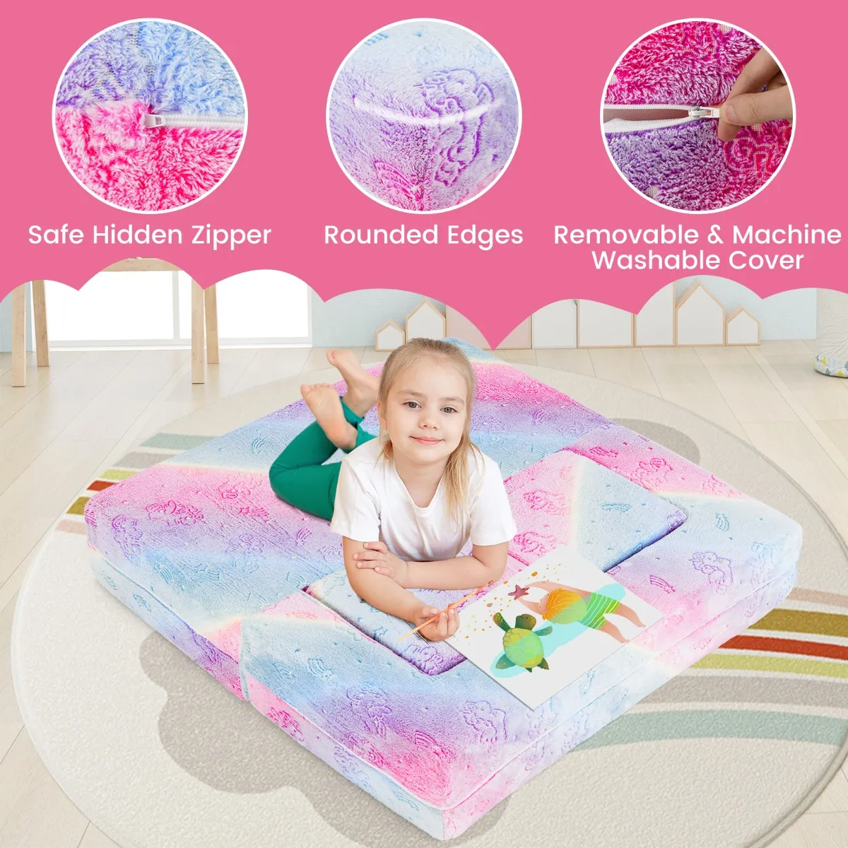 【Betrouwbare ondersteuning】: Gevuld met veerkrachtig schuim met hoge dichtheid, ondersteunt onze peuterbank alle soorten actief spel om de coördinatie en motoriek van kinderen te verbeteren. Bovendien beschermen verborgen ritsen en afgeronde randen je kleine ontdekkingsreizigers tegen ongelukjes.